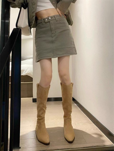 ブーツ ライダーブーツ スリム ニーハイブーツ 【35】22.5cm カーキ