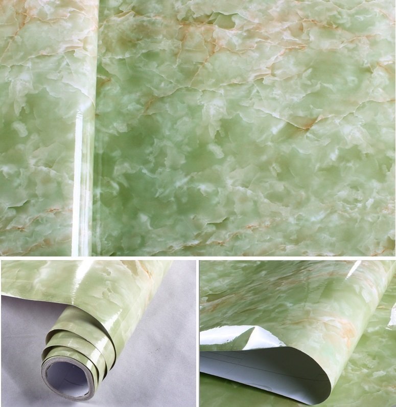 大理石調 【B430 Green/緑 61cm×30m 】 壁紙 北欧 インテリア リメイクシール DIY カッティングシート 糊付き タイル 石