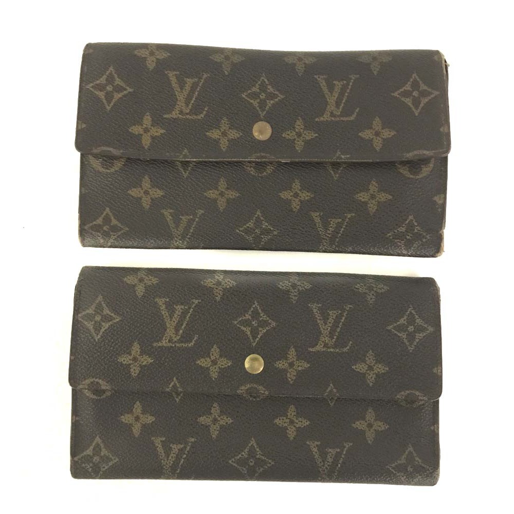 1円 LOUIS VUITTON ルイヴィトン レザー モノグラム ポルトフォイユ インターナショナル 三つ折り 長財布 2点セット ブラウン /ZX1062