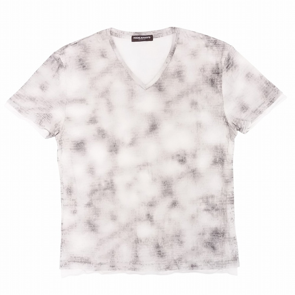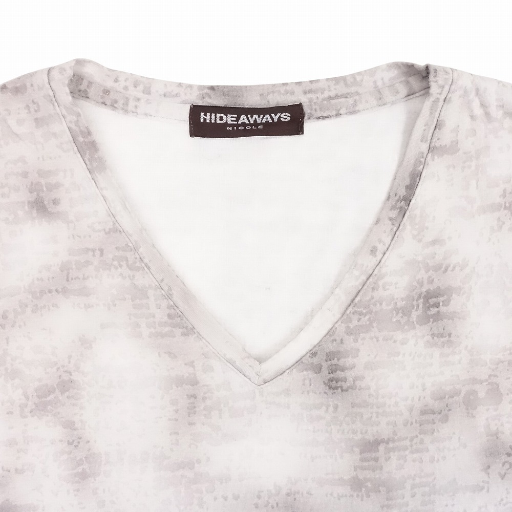 【HIDEAWAYS NICOLE ハイダウェイニコル ムラ柄 Tシャツ カットソー 半袖 Vネック オパール加工 トップス 48 L グレー メンズ】 | |