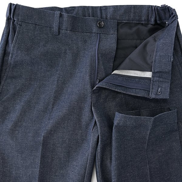 特殊な染色した糸を用いた色が落ちにくい【ever denim fabric】を採用したセットアップです。 程よく伸びるストレッチ素材なので、動きやすく、着用時の負担を軽減してくれます。 色落ちがしにくいため、購入時の色合いを長くお楽しみいただけて、更にマシンウォッシャブル対応なので、洗濯の際に他の物と一緒に洗うことができます。 ジャケットは、素材のストレッチ性を損なわない快適なアンコン仕立てで、パターンの改良により袖の可動域がアップし、より腕が動かしやすくなっており、フロントの着丈を少し長くすることで、着映えするキレイめシルエットにバージョンアップ。 飾りステッチを同色にすることでカジュアル見えを抑え、ビジネススタイルでも着用できるようにデザインされています。 スラックスは、すっきりとしたテーパードシルエットを採用し、ウエスト横のゴムシャーリングにより快適な穿き心地に仕上がっています。 デニム見えなデザインなのでビジネススタイル以外にも合わせやすく、カジュアルな着こなしにも対応できて、オンにもオフにも活躍してくれます。 セットアップとしてだけでなく、上下を別々のコーディネートに投入することで、幅広いスタイリングを可能としてくれる優秀アイテム。 しっかりとした素材感なので、秋冬はもちろん春頃までロングシーズンで着用いただけます。 【ジャケット】 ・アンコン仕立て(裏地は背抜き仕様) ・フロントは2つボタン ・センターベント ・袖先は3つボタン(開き見せ) 【スラックス】 ・ノータック ・ジッパーフライ ・テーパードシルエット ・ウエスト横にゴムシャーリング入り |