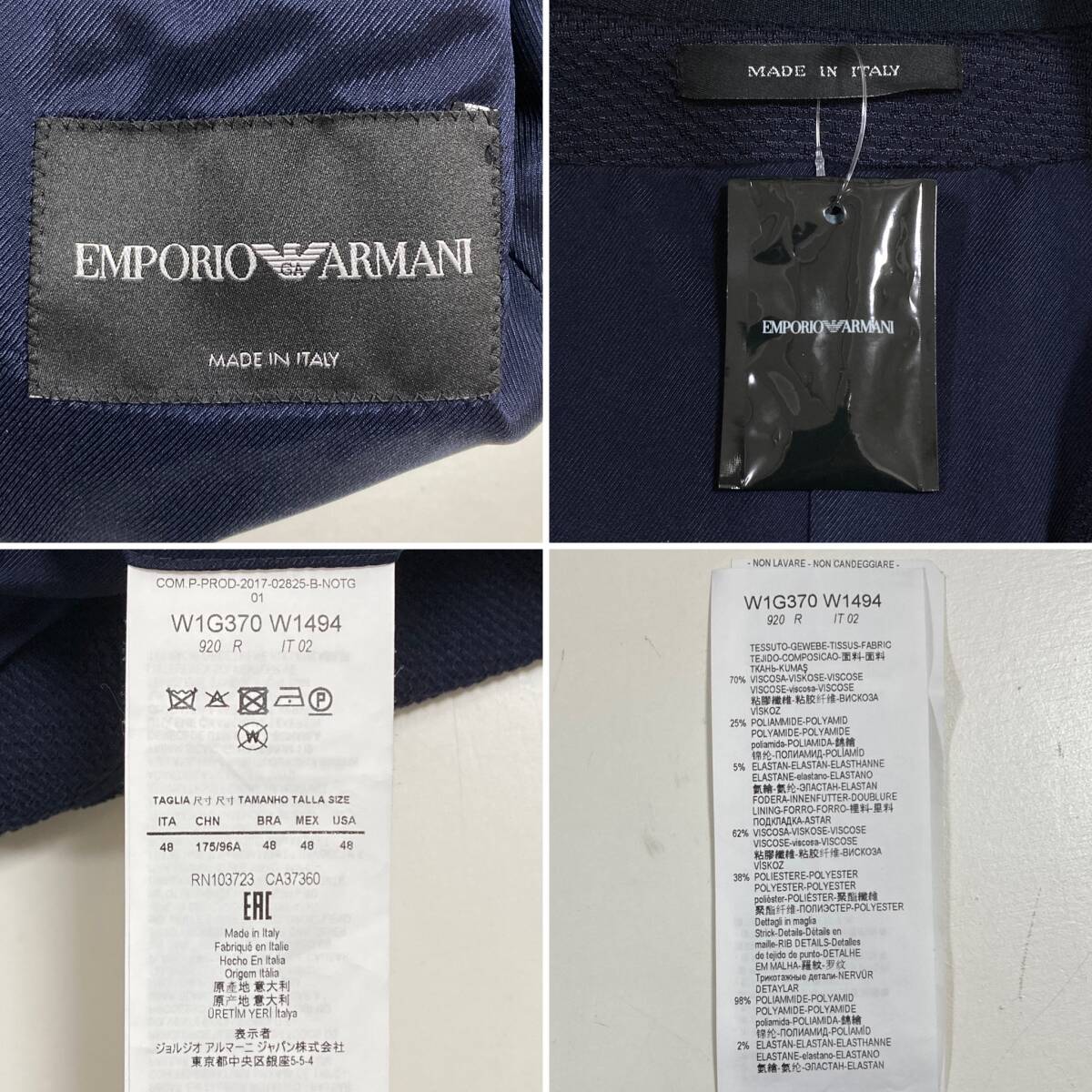 イタリア製 EMPORIO ARMANI 比翼 ジップ ブルゾン ジャケット ネイビー