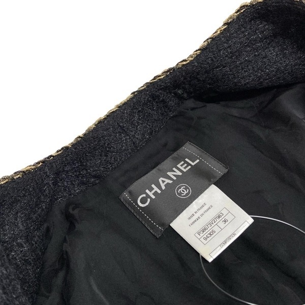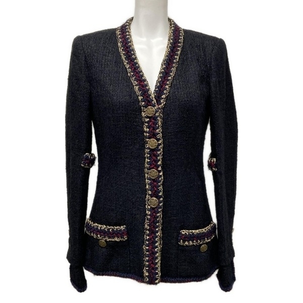 シャネル CHANEL サイズ36 S P38673 ナイロン、コットン 黒×ネイビー×マルチ レディース ツイード/ラメ/ノーカラー ジャケット