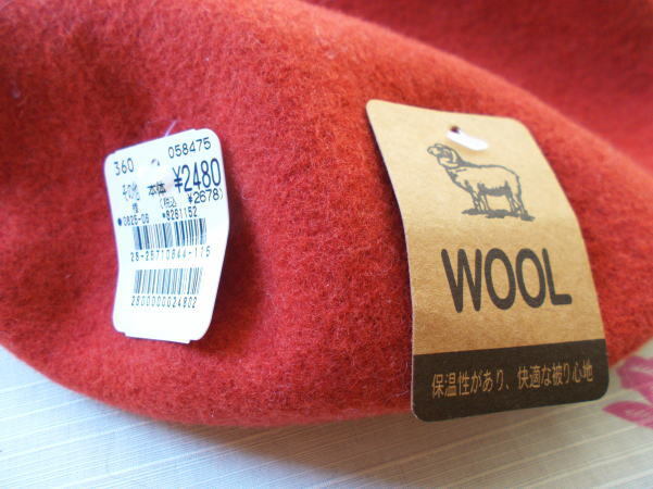 タグ付・ウール製ベレー帽◆未使用/大同/新品/秋冬◆赤レンガ色/レッド/57.5cm/帽子/羊毛