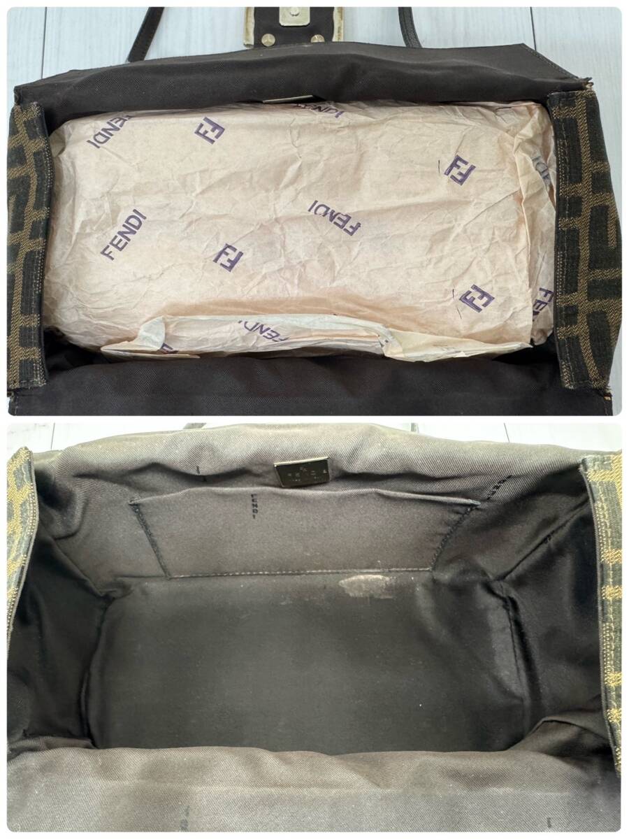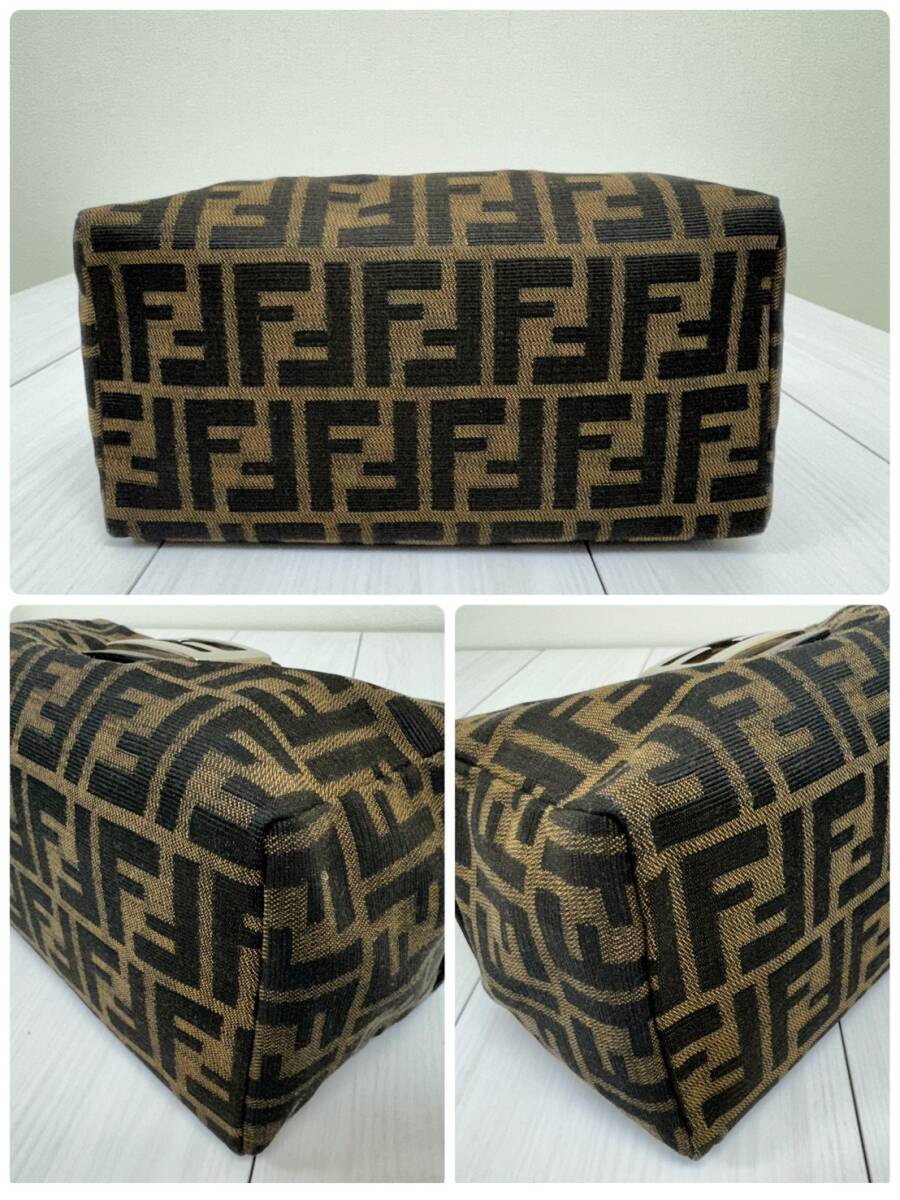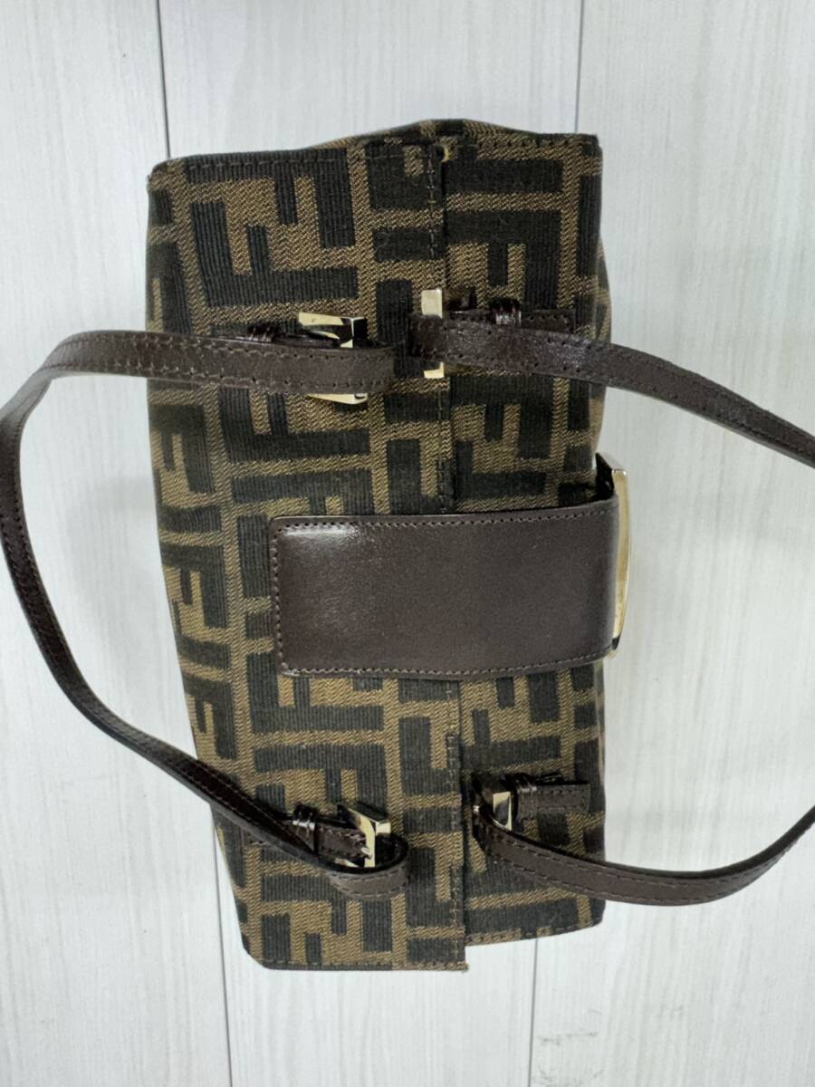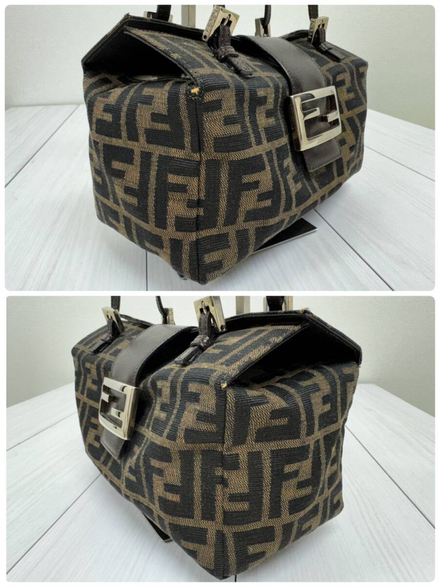 【美品】FENDIフェンディ ズッカ柄スクエアハンドバッグ/マンマバケット/キャンバス×レザー/ブラウン/FF柄 【10163350001】