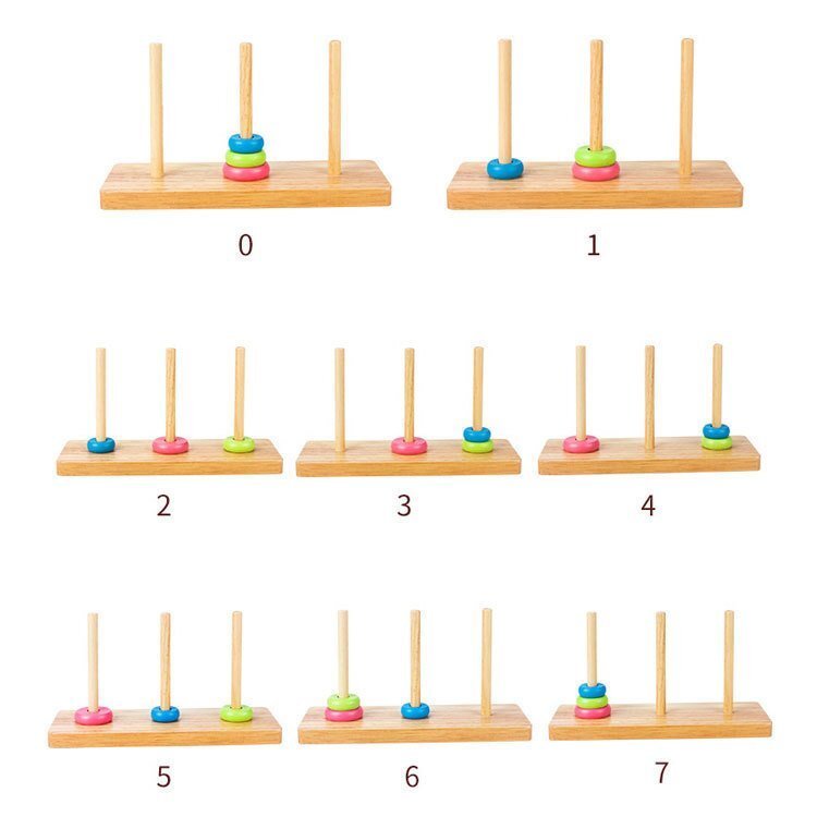 簡単なルールに従って3本の柱を上手に使い、全ての円盤を別の棒に移し替えることが出来れば成功です。