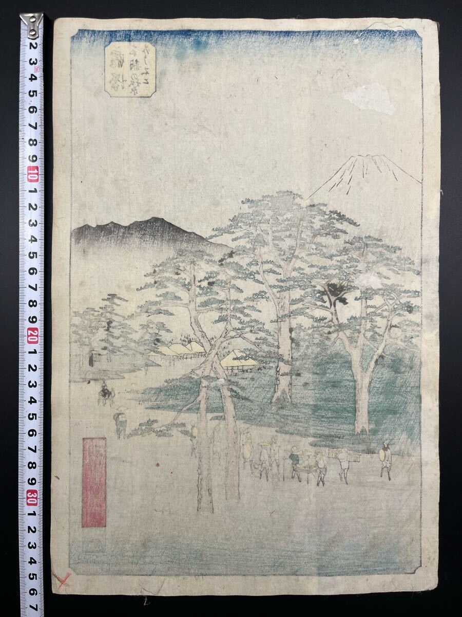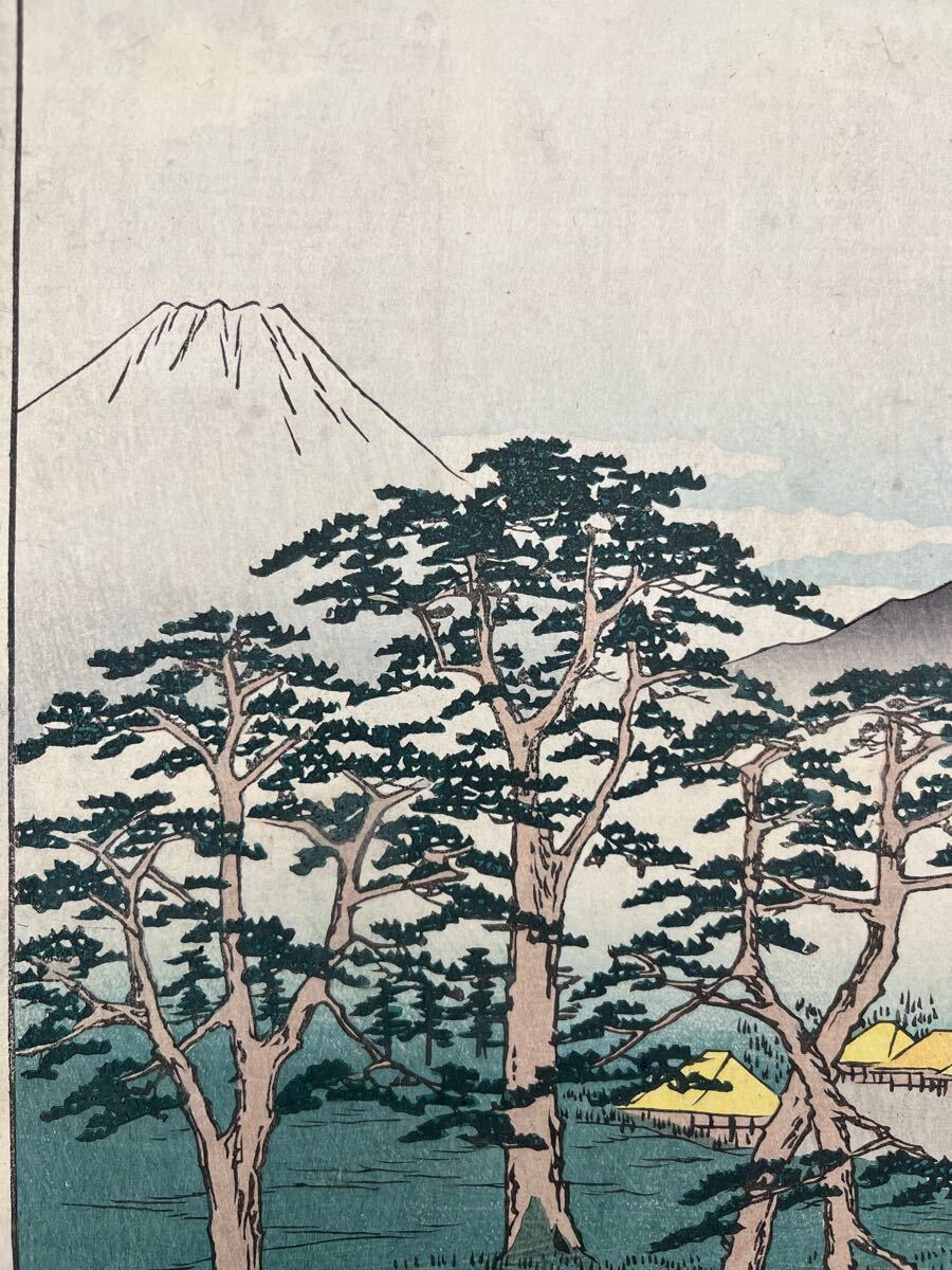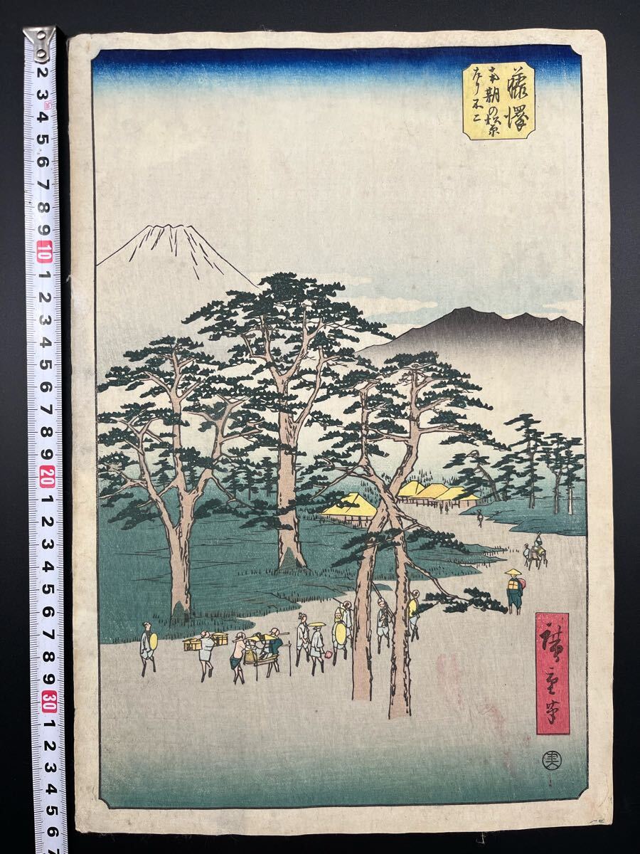 【真作】名作!本物浮世絵木版画 初代 歌川広重「五十三次名所図会 七 藤沢 南期の松原左り不二」江戸期 名所絵 大判 錦絵 保存良い
