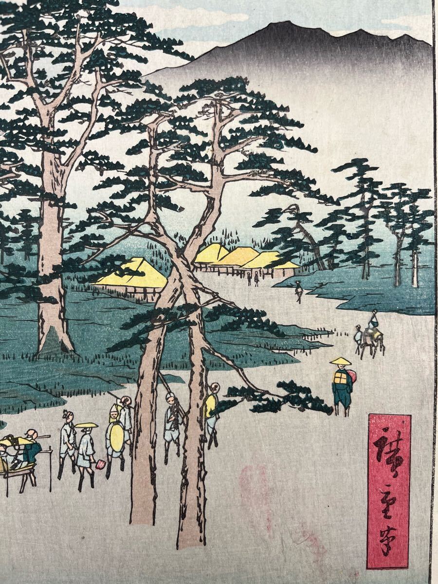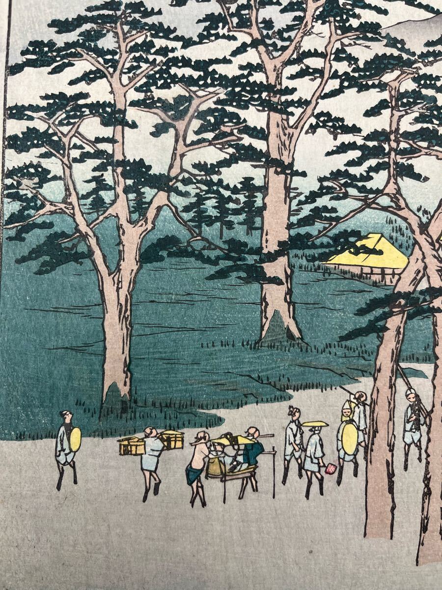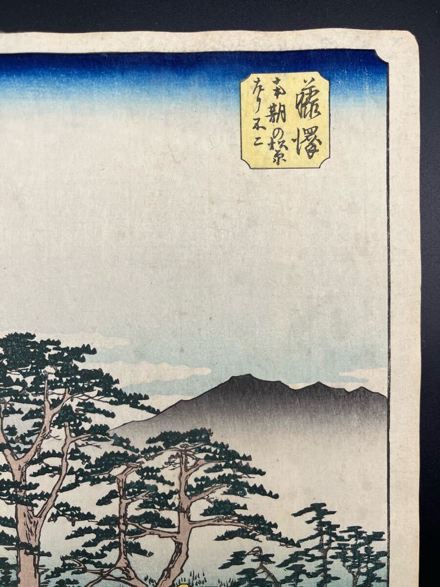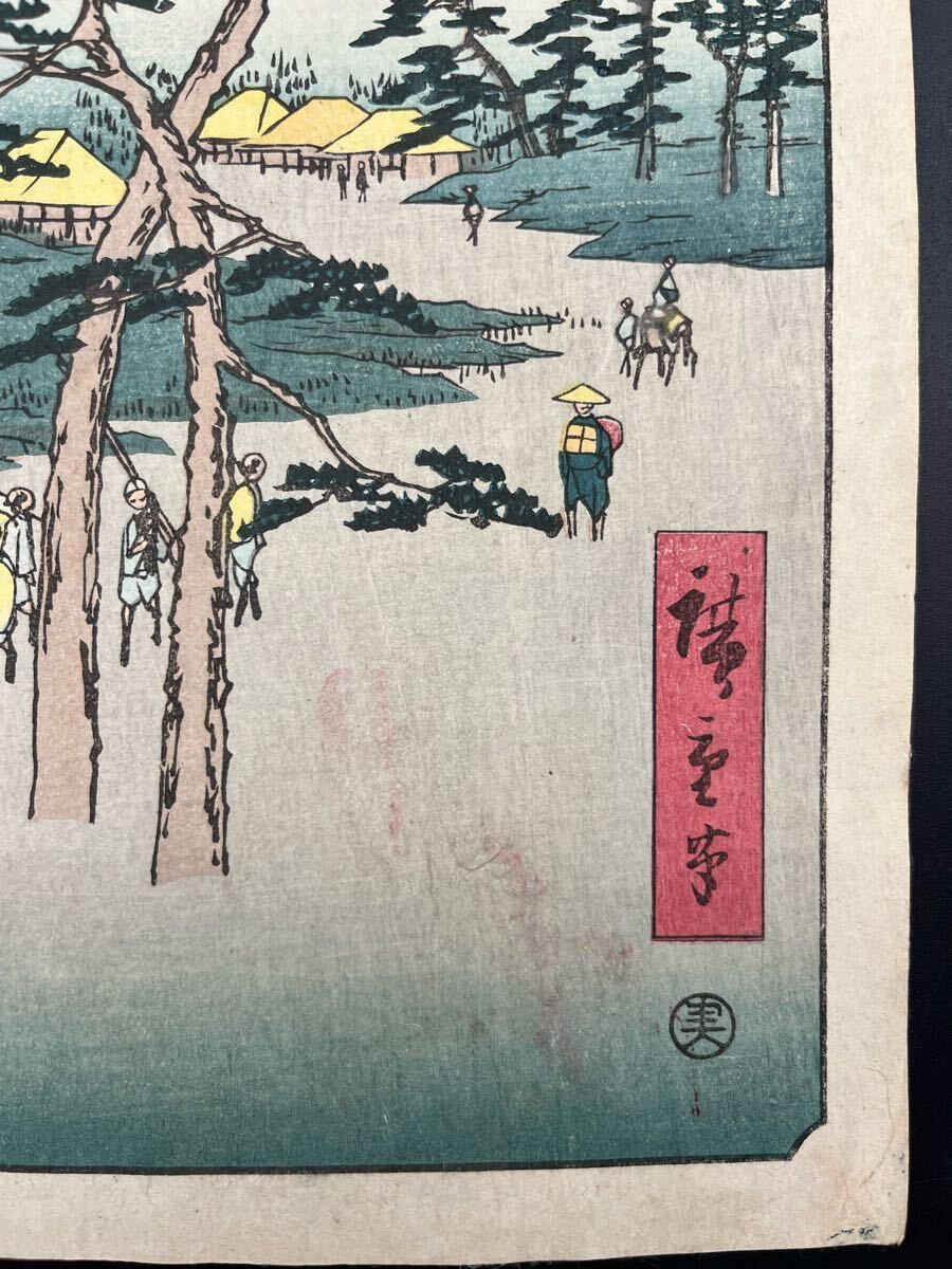 【真作】名作!本物浮世絵木版画 初代 歌川広重「五十三次名所図会 七 藤沢 南期の松原左り不二」江戸期 名所絵 大判 錦絵 保存良い