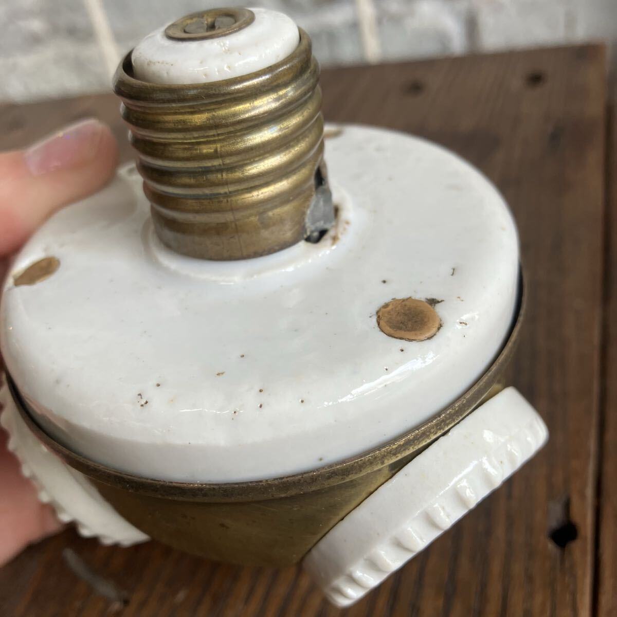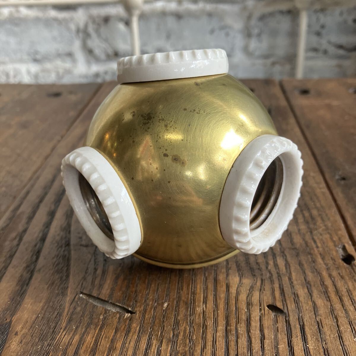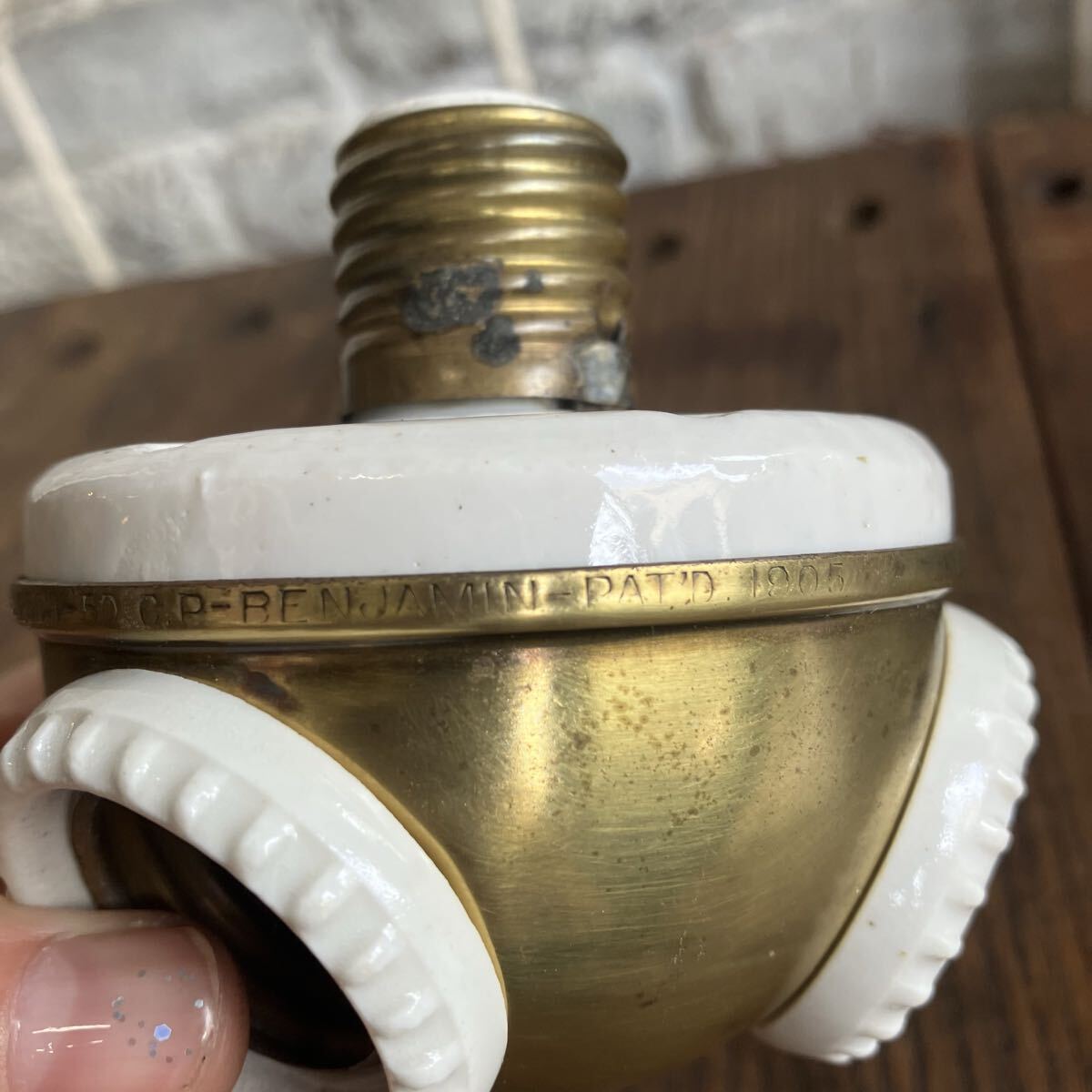 はじめましてRim ANTIQUESです。 ご覧いただきありがとうございます。 【商品説明】 アメリカで購入したベンジャミンソケット です。 PATENT表記1905 1900年代初頭に多くアメリカで使用されていた ベンジャミシソケット。 ソケットの数が増えるにつれ 希少性も高まるアイテムです。 こちらは1つの照明で 3つの電球を取り付けることができます。 ソケットのみの販売になります。 E26の電球を使用してください。LED可。 細かな汚れやキズ、 裏面陶器部分(使用に支障のない穴)カケございます。 画像ご確認お願い致します。 画像1.2枚目はイメージです。 お送りする個体は3〜10枚目になります。 送料は無料です。 発送はゆうパック で送ります。 他にもアメリカで買い付けた商品を出品してますのでご確認下さい。 是非ウォッチリスト、フォロー宜しくお願いします。 新入荷商品はインスタグラムでアップしています。ご覧下さい! インスタグラムにはホームページから飛べます。 コチラ 【サイズ】 直径 約7.5cm 縦 約8.5セcm ソケット部 約3cm ※実寸になります。若干の誤差はご了承さい。 【状態】 キズや汚れ、サビ などはありますが古い物なので味とお考え下さい。 こちらの商品はビンテージ品になります。 長い年月を経て生じたダメージも味わいであると考えております。 ご理解いただける方のみ、入札ください。 また、状態の良し悪しは個人差がありますので、神経質な方はご遠慮下さい。 いかなる場合でもノークレーム、ノーリターンでお願いします。 【Rim ANTIQUES】 個人でアメリカから買い付けた雑貨や家具を販売しています。 都営新宿線 篠崎駅徒歩6分の所に実店舗があります。 イベント出店などで不定休ではありますが、お近くの方は是非お店に遊びに来て下さい。 (詳しくは自己紹介文をお読み下さい) |