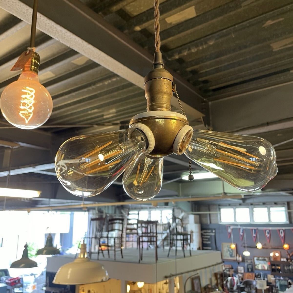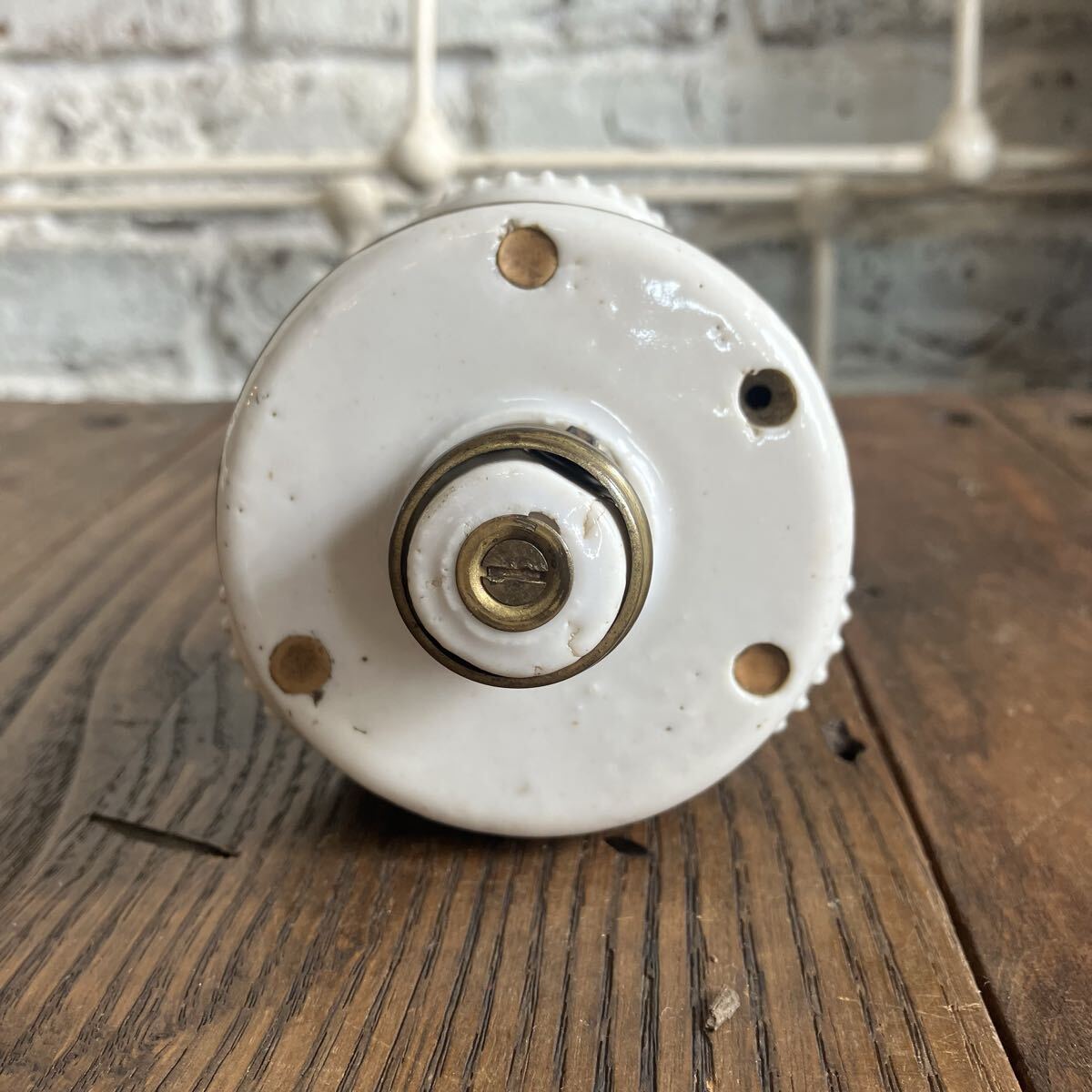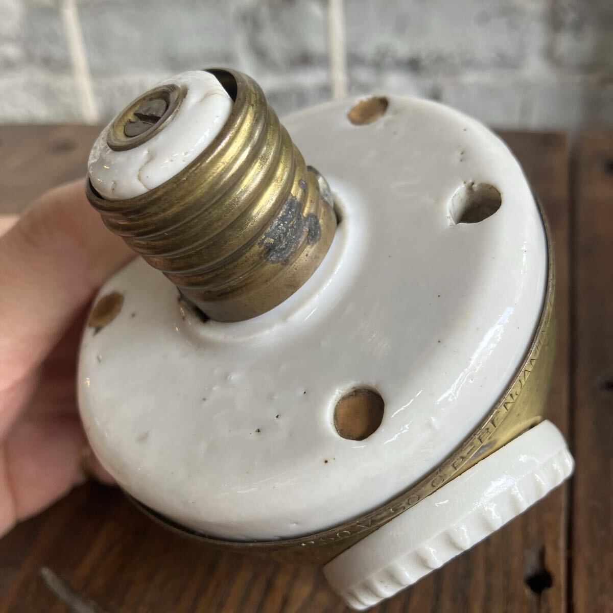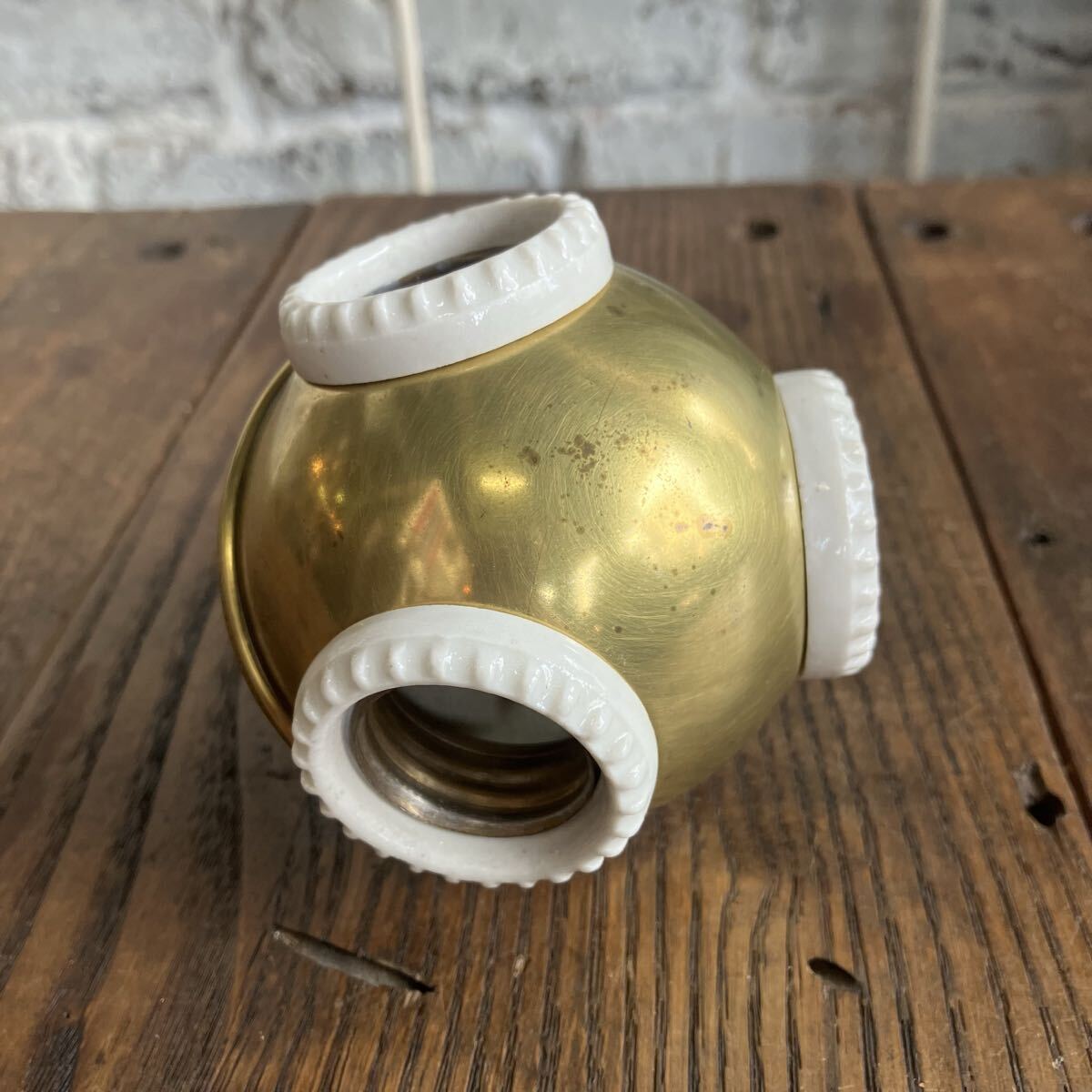 はじめましてRim ANTIQUESです。 ご覧いただきありがとうございます。 【商品説明】 アメリカで購入したベンジャミンソケット です。 PATENT表記1905 1900年代初頭に多くアメリカで使用されていた ベンジャミシソケット。 ソケットの数が増えるにつれ 希少性も高まるアイテムです。 こちらは1つの照明で 3つの電球を取り付けることができます。 ソケットのみの販売になります。 E26の電球を使用してください。LED可。 細かな汚れやキズ、 裏面陶器部分(使用に支障のない穴)カケございます。 画像ご確認お願い致します。 画像1.2枚目はイメージです。 お送りする個体は3〜10枚目になります。 送料は無料です。 発送はゆうパック で送ります。 他にもアメリカで買い付けた商品を出品してますのでご確認下さい。 是非ウォッチリスト、フォロー宜しくお願いします。 新入荷商品はインスタグラムでアップしています。ご覧下さい! インスタグラムにはホームページから飛べます。 コチラ 【サイズ】 直径 約7.5cm 縦 約8.5セcm ソケット部 約3cm ※実寸になります。若干の誤差はご了承さい。 【状態】 キズや汚れ、サビ などはありますが古い物なので味とお考え下さい。 こちらの商品はビンテージ品になります。 長い年月を経て生じたダメージも味わいであると考えております。 ご理解いただける方のみ、入札ください。 また、状態の良し悪しは個人差がありますので、神経質な方はご遠慮下さい。 いかなる場合でもノークレーム、ノーリターンでお願いします。 【Rim ANTIQUES】 個人でアメリカから買い付けた雑貨や家具を販売しています。 都営新宿線 篠崎駅徒歩6分の所に実店舗があります。 イベント出店などで不定休ではありますが、お近くの方は是非お店に遊びに来て下さい。 (詳しくは自己紹介文をお読み下さい) |