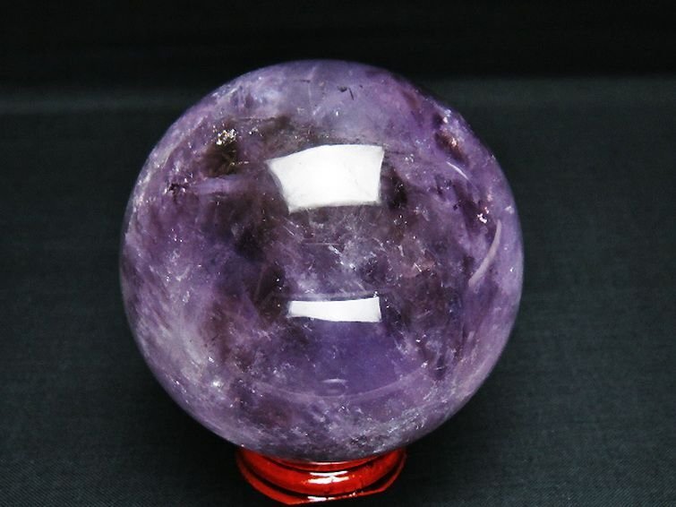 ■商品名: アメジスト丸玉 ■商品ID: T259-12966 ■商品重量:約 504g ■商品サイズ:粒直径約:71mm 【アメジストクォーツ(紫水晶)】 アメジストは鉄分によって紫色に発色した水晶の一種です。 名称はギリシャ語で酒の意味のmethyと否定辞のa、つまり「酒に酔わない」「この石でできた盃で酒を飲めば悪酔いしない」に由来するとされています。 「酒に酔わない」と言われる通り、アメジストは体調面への作用が大きく、血液を浄化して解毒、解熱作用を高め皮膚病の治療や不眠を解消するのにも用いられたと言われています。 アメジストは真実の愛を導く愛の守護石とも呼ばれ恋愛運UPの石としても広く知られています。 理想的な出会いをもたらす効果や持ち主に美や調和を与え、セクシーな魅力を引き出すとのことですので恋愛成就のお守りとしても最適といえるでしょう。 また、くよくよしたり傷ついたりしている時には癒し、目前の困難を乗り越えていけるように精神を強くするヒーリング効果も期待できます。 不眠にも効果があるとされていますので、ストレスを抱えている人にもおすすめの石です。 ⇒ アメジストをもっと詳しく ◆ワンポイント情報 アメジストは産地によって結晶や色味の傾向が変わります。 例えばブラジル産は結晶が大きめだが色味は少し薄め、ウルグアイ産は結晶は小さく細かいが色味は濃紫の傾向、メキシコ産は細長い結晶でライラックの様な明るく透明感のある紫など特徴が異なります。 産地による好みが人によって分かれるのもアメジストならではと言えるでしょう。 |