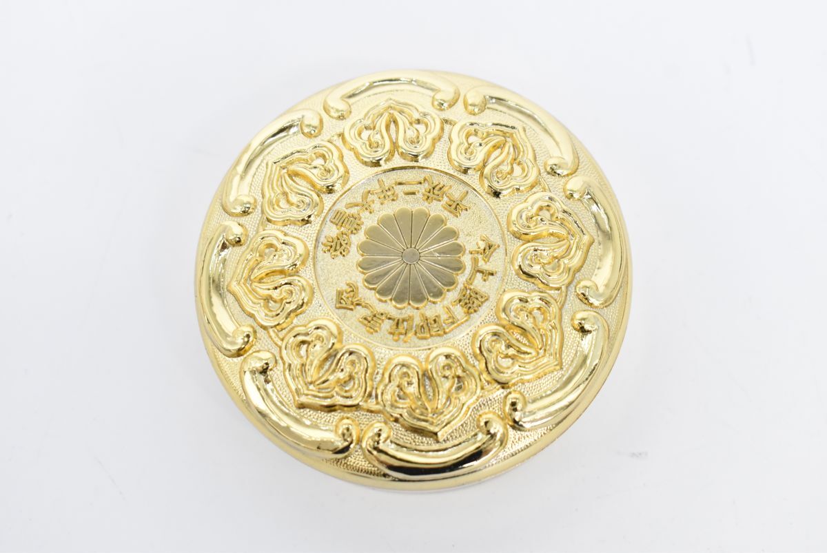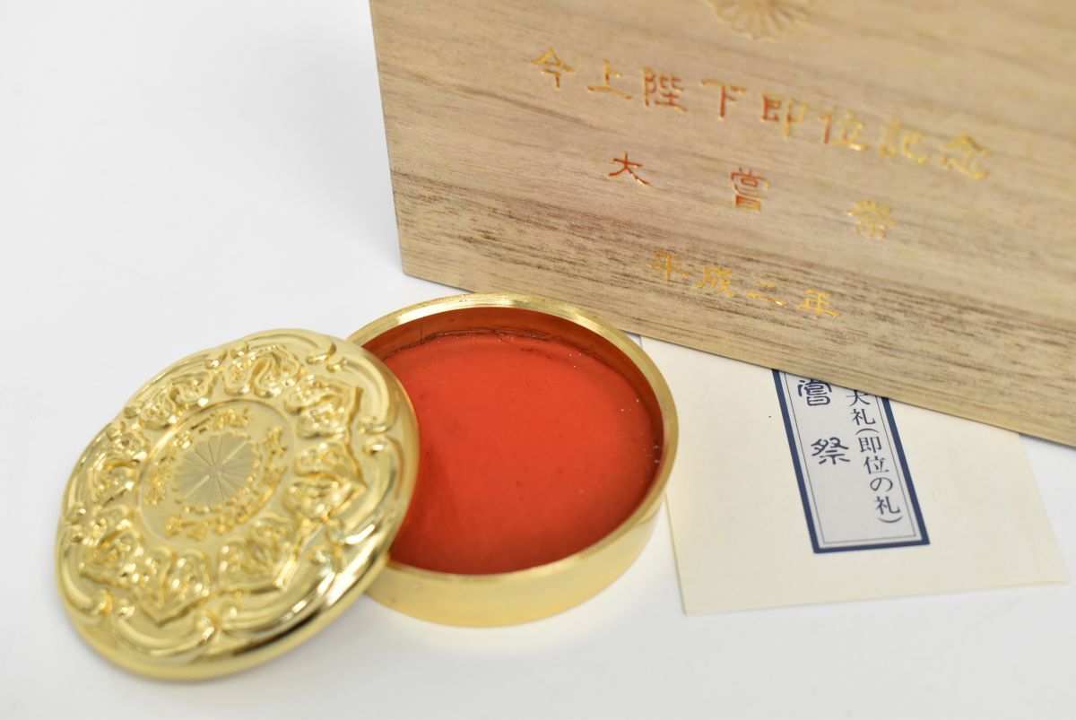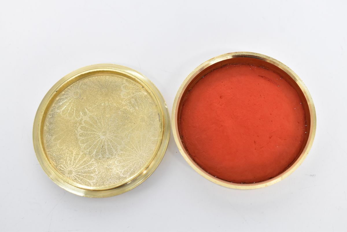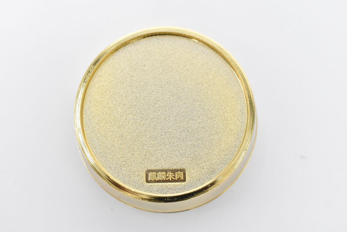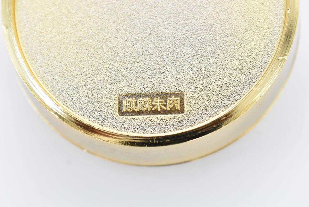 (1264S 1008M15) 1円~ 麒麟朱肉 木箱 菊紋 金メッキ 印鑑 朱肉ケース 印泥 記念品