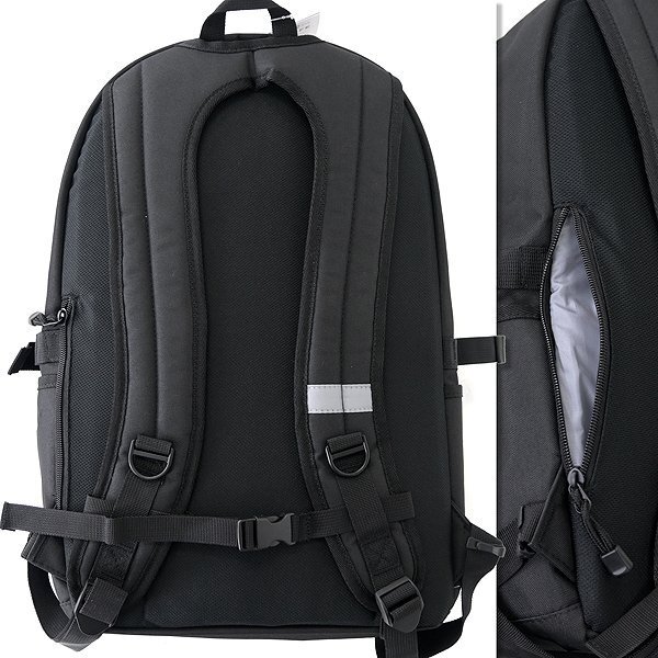 思わぬ雨にも心強い撥水加工生地を採用し、通勤、通学、スポーツ、レジャー、旅行など、様々なシーンで活躍してくれる、大容量ラウンドフォルムバックパックです。 メイン収納部はダブルジップでサイドまで開くため、開口部が広くて物を出し入れしやすく使い勝手の良いデザイン。 容量32Lの大容量で、メイン収納部の背面側には15.6インチノートPCに対応した、ゆとりのクッションスペースがあり、荷物が少ない時はサイドのベルトで調整が可能です。 たくさんのアイテムがしまえるマルチポケット仕様になっていて、フロント部分には2つのジッパー開閉マチポケット、両サイドにはペットボトル等の収納に適したポケット、背中部分の側面(右手側)にはスマートフォンや財布等の収納に適したジッパー開閉ポケットが設けられています。 人間工学に基づいた立体的な背面パネルとアーチ状のショルダーベルトで体にしっかりフィットし、身体への負担を軽減してくれます。 また、背面のメッシュは通常よりもキメ細かで触り心地の良いものを使い、ショルダーベルトにはリュックのズレ落ちを防ぐチェストベルトが設けられています。 ショルダーベルトには車のライトなどに反射するリフレクターを装備し、安定してお使いいただけます。 【デザイン】 ・メイン収納部はWジップで開閉 ・内部に15.6インチノートPC対応可能なクッション付きポケット1つ ・前面にジッパー付きポケット2つ、ジッパー付きメッシュポケット1つ ・背面にジッパー付き横長ポケット1つ ・左右にポケット2つ ・ショルダーストラップとチェストストラップは長さ調節可能(着脱はできません) |