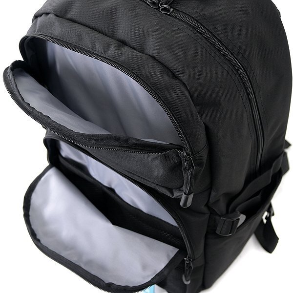新品 未使用 紙タグあり サイズ:縦47×横31×幅19cm 容量:約32L 重量:約770g ※商品に記載されたサイズ・寸法です※ 素材:ポリエステル ブラック×ライトブルー(本体色×ワッペン色) |