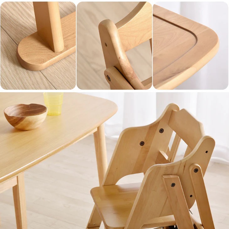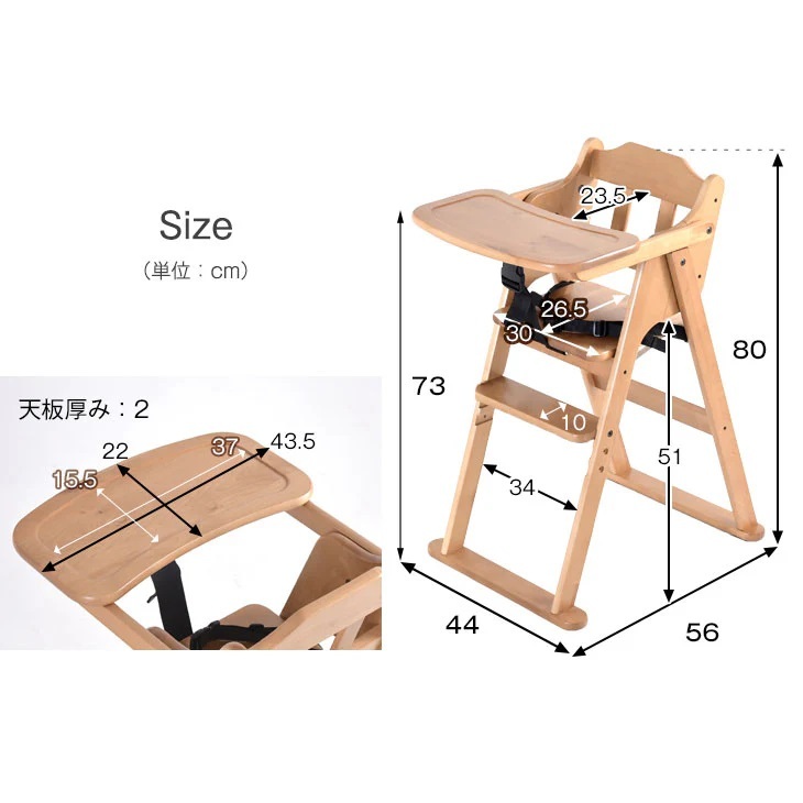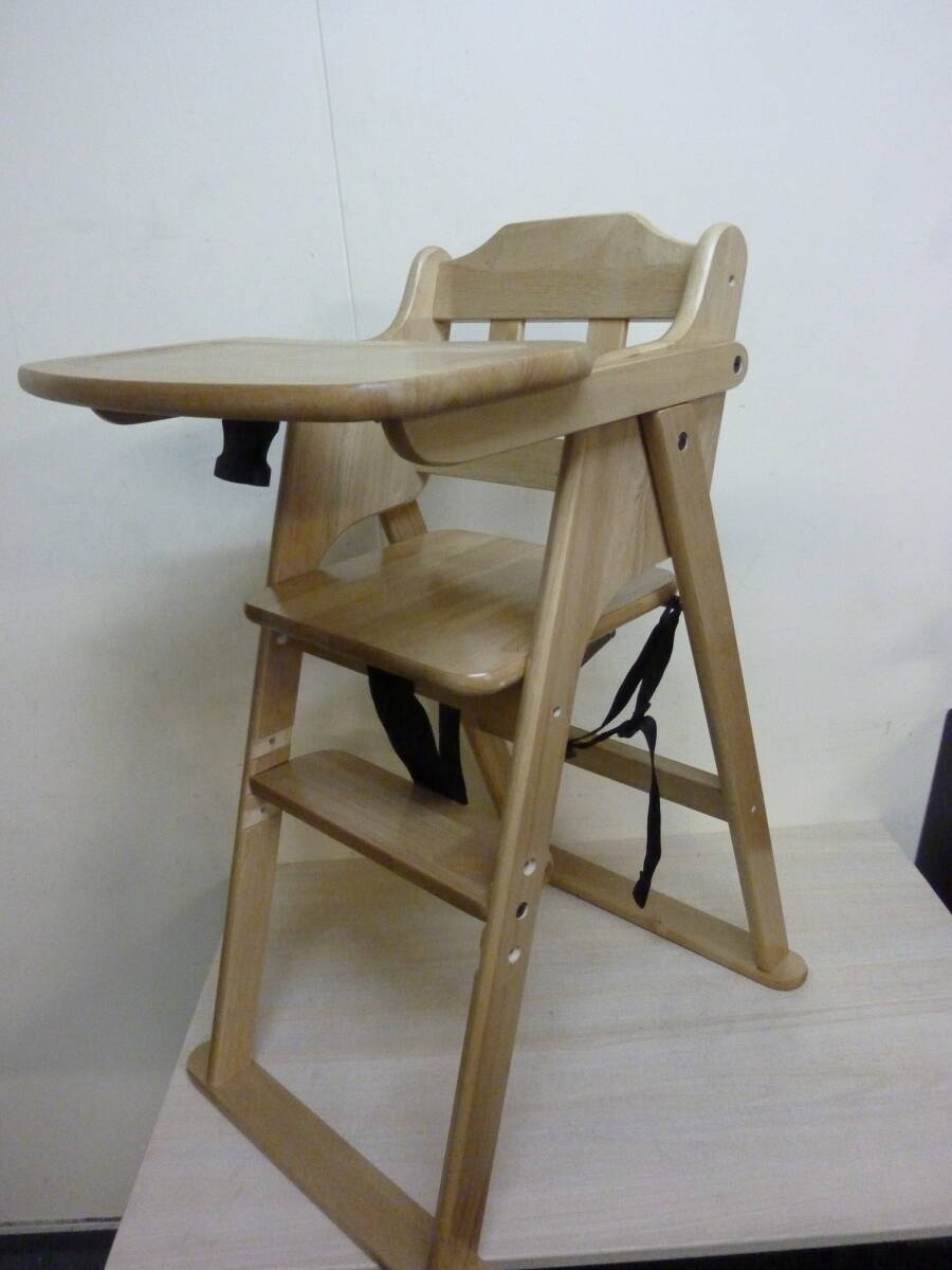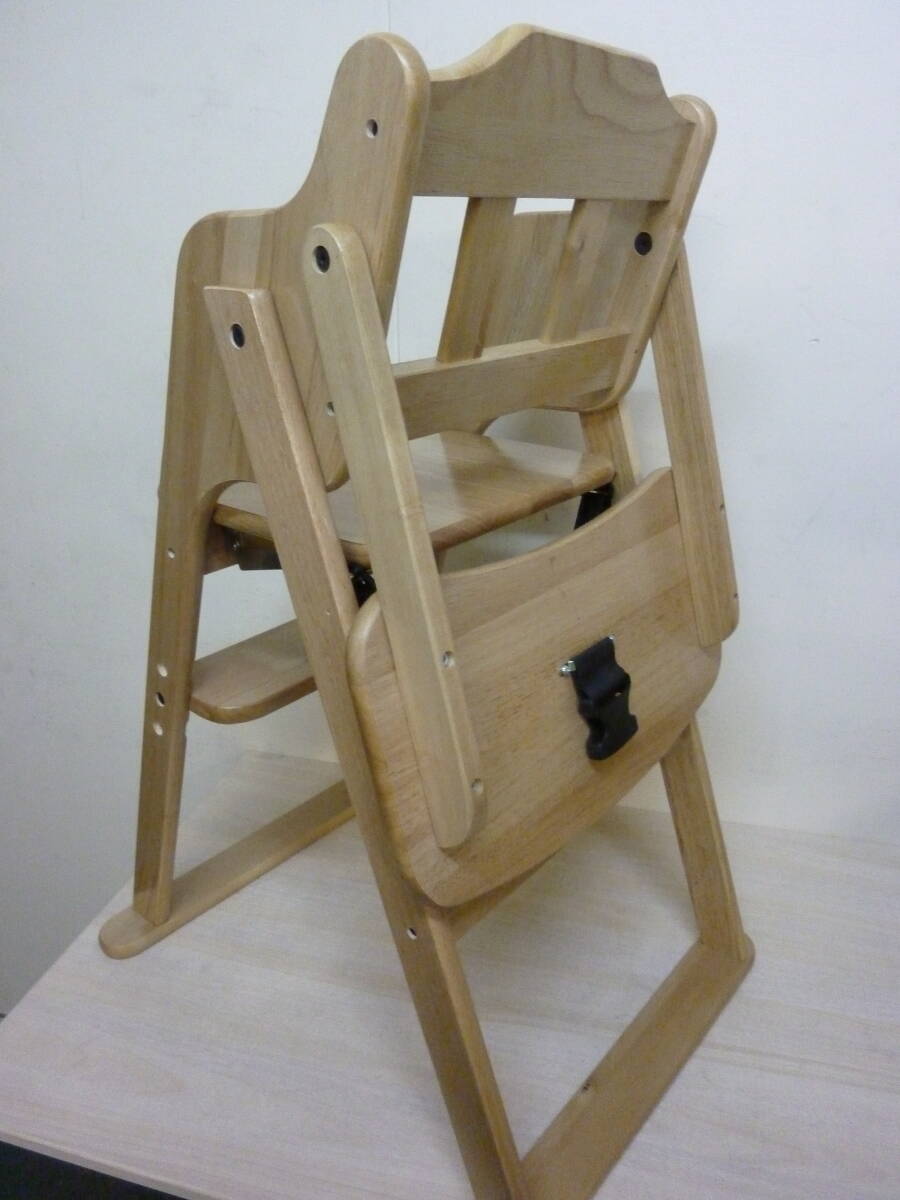 1円~ 未使用/新品 テーブル&ベルト付き ベビーチェア 折りたたみ式 高さ調整 立ち上がり防止 木製 | ||