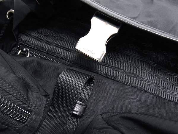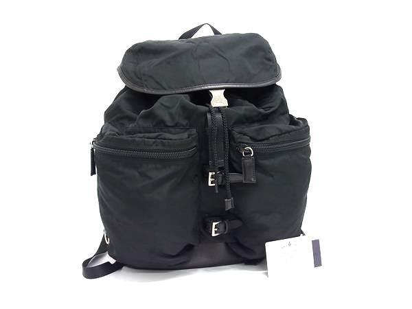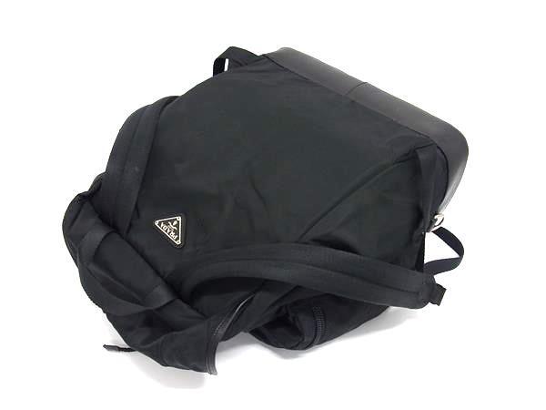 1円 PRADA プラダ V163 テスートナイロン×サフィアーノレザー リュックサック バックパック デイパック ブラック系 FK9281