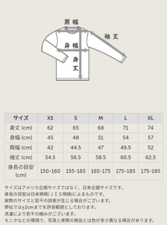 XL(身丈/74cm、身幅/57cm、肩幅/52cm、袖丈/62.5cm)