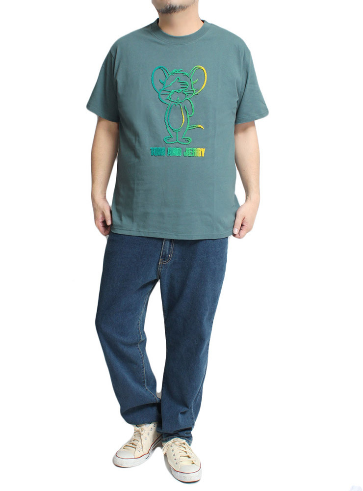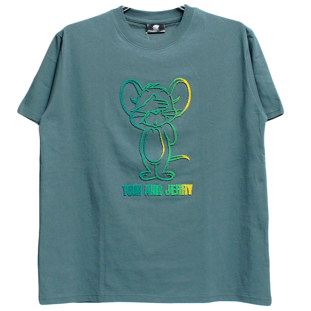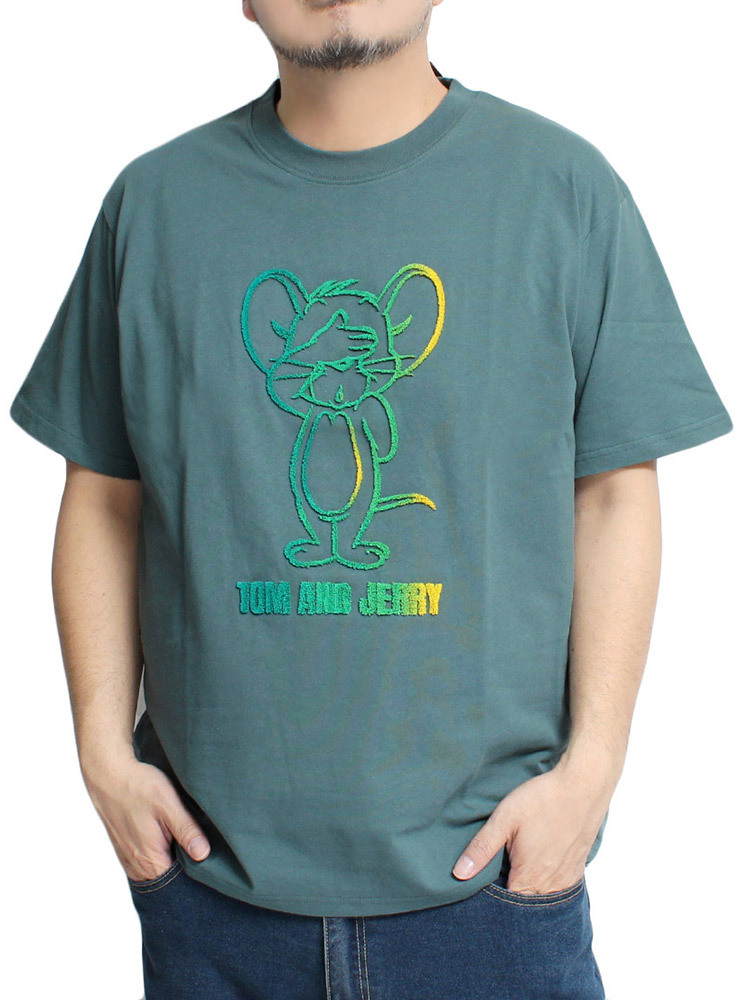 | 商品名 | 【新品】 3L ブルーグリーン TOM AND JERRY トムとジェリー 半袖 Tシャツ メンズ 大きいサイズ エンボス ブラシ サガラ 刺繍 プリント クルーネック カットソー |
