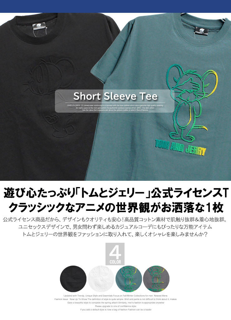 | 商品説明 | こだわりの定番Tシャツにトムとジェリーをプリントした半袖Tシャツです。 |