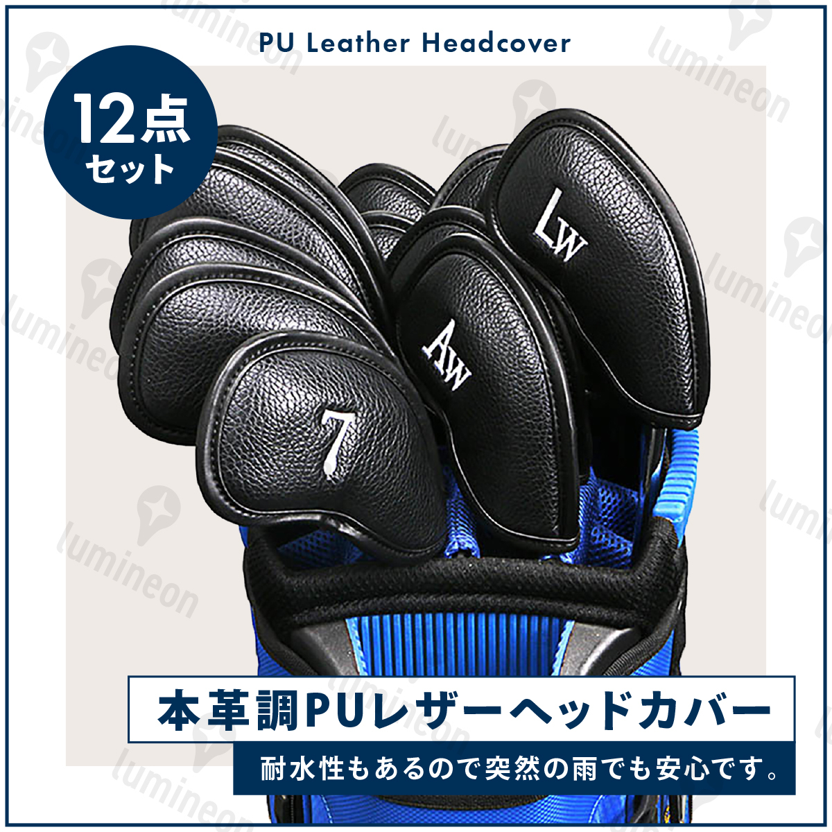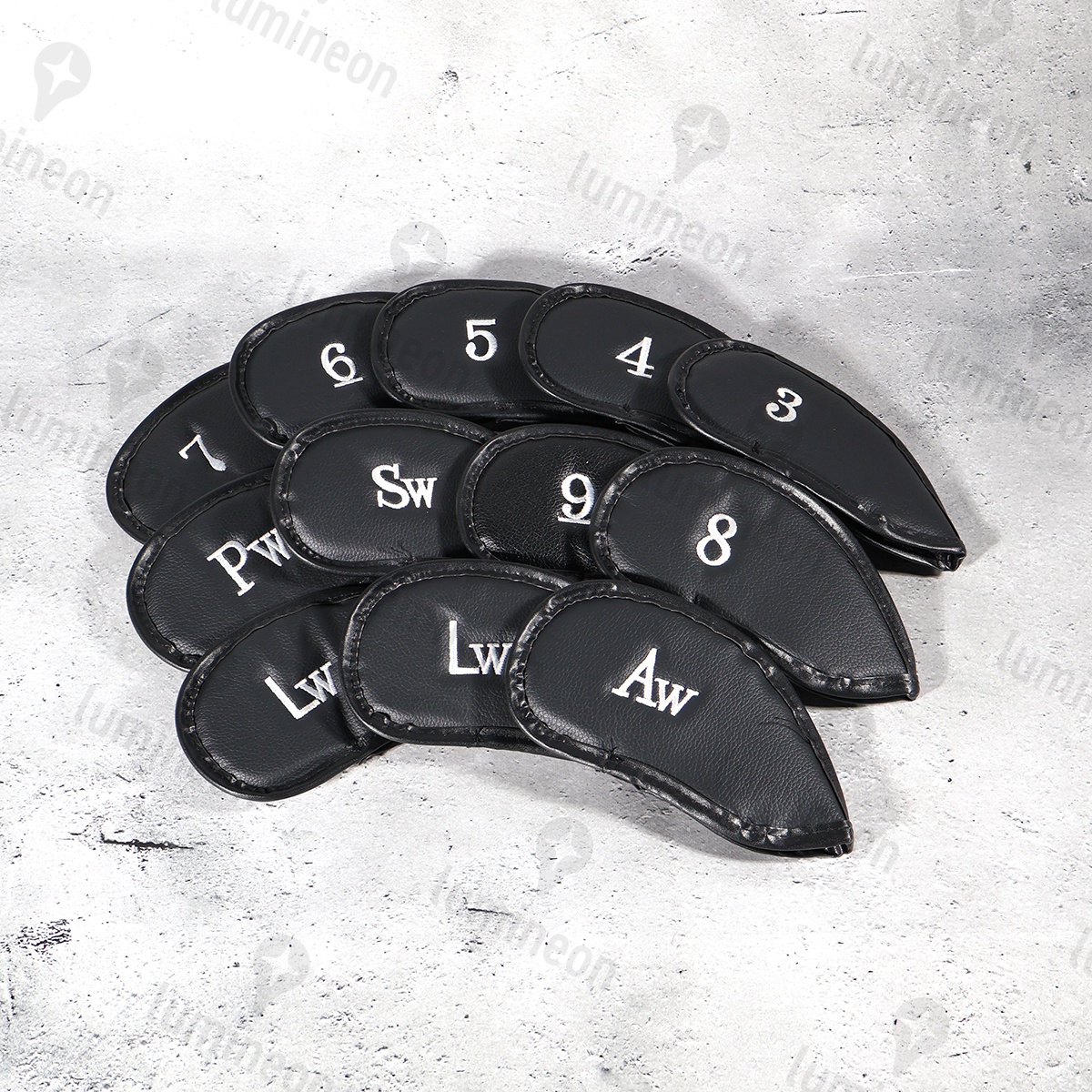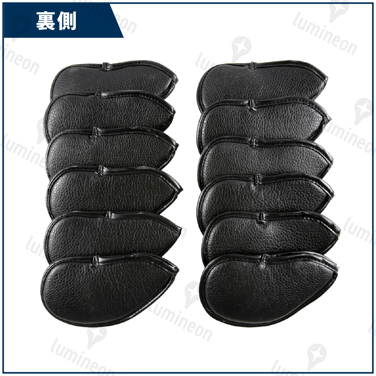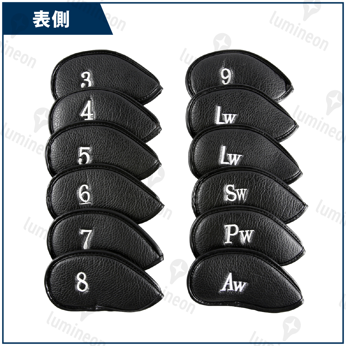 12点セット 高級 アイアン カバー ヘッド ブラック 黒 PUレザー ゴルフ クラブ フード 番手付き 刺繍 シンプル おしゃれ 保護 安い g032a