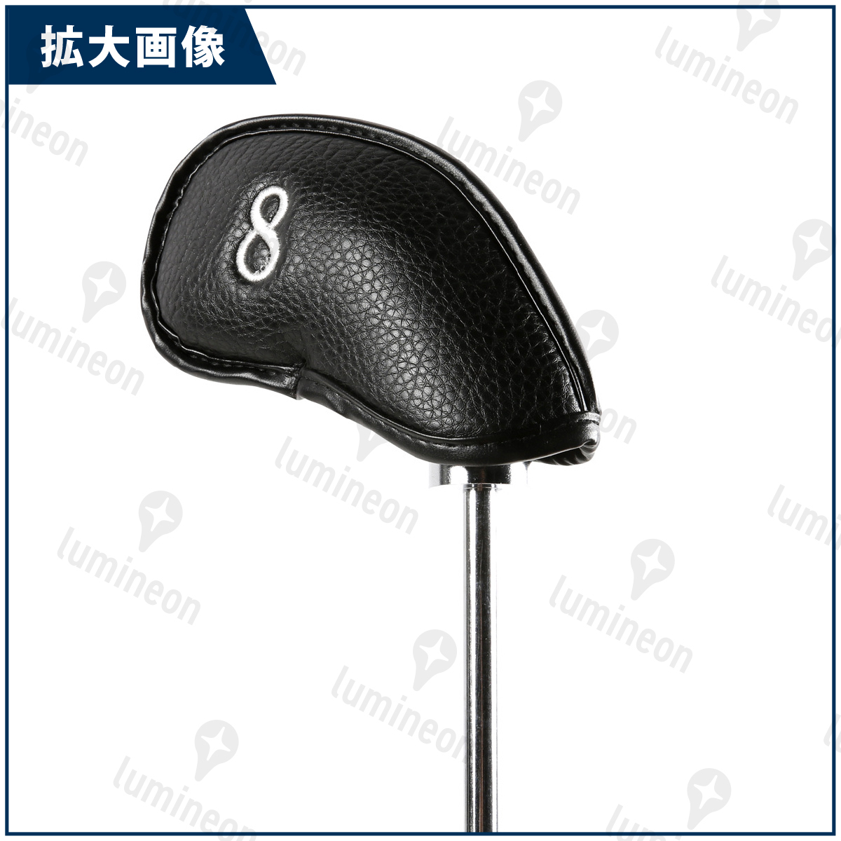 12点セット 高級 アイアン カバー ヘッド ブラック 黒 PUレザー ゴルフ クラブ フード 番手付き 刺繍 シンプル おしゃれ 保護 安い g032a 3