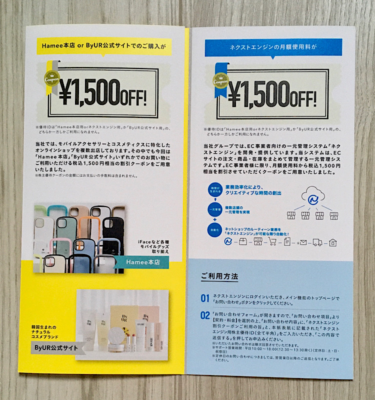 コード通知 Hamee 株主優待券 1500円オフ 1枚 2026年4月30日まで