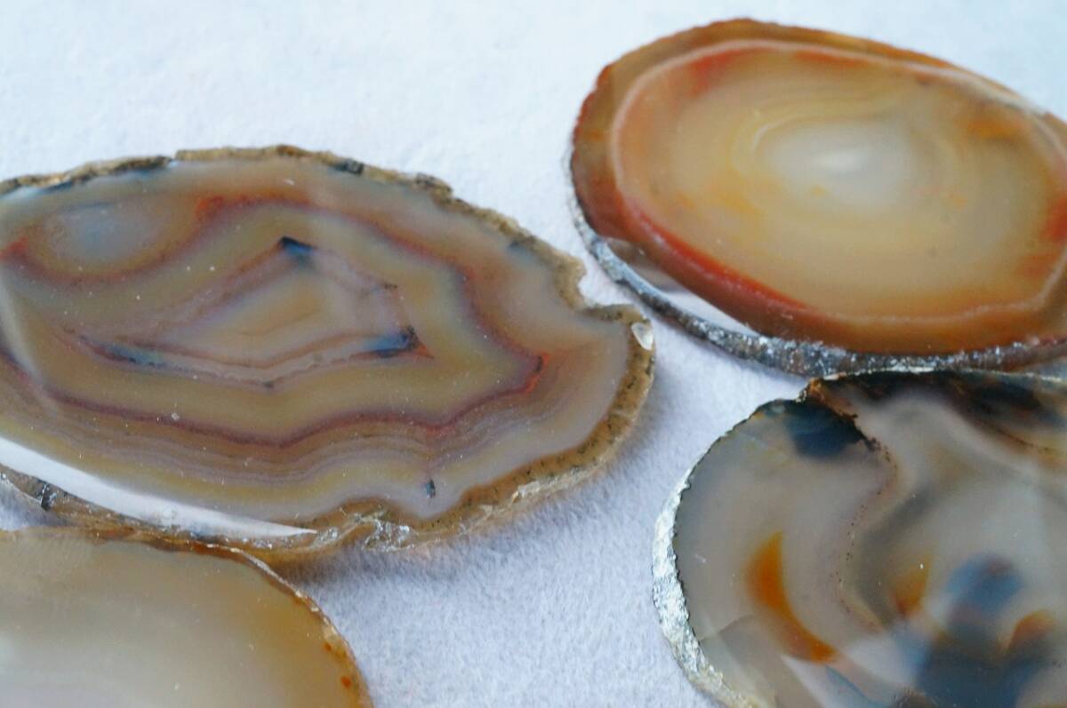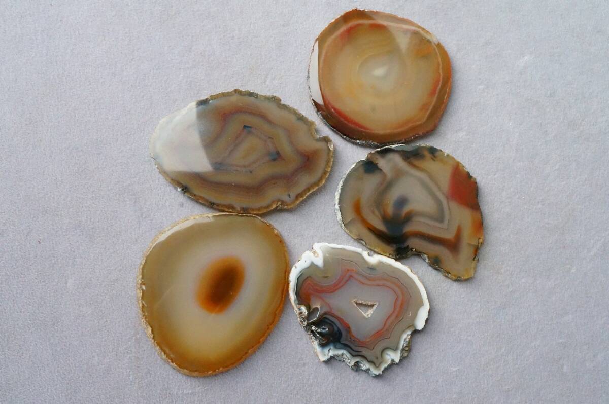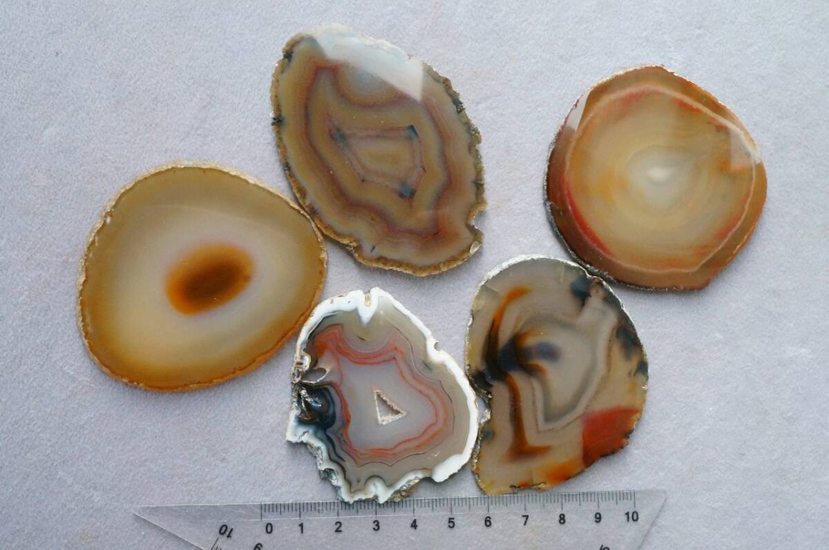 | 希少!昔の在庫なので上質!縞模様が綺麗な上質ブラジル産瑪瑙・メノウ・めのう・メノー・ピクチャーメノースライス板原石5枚セット127g② | |||||||||||