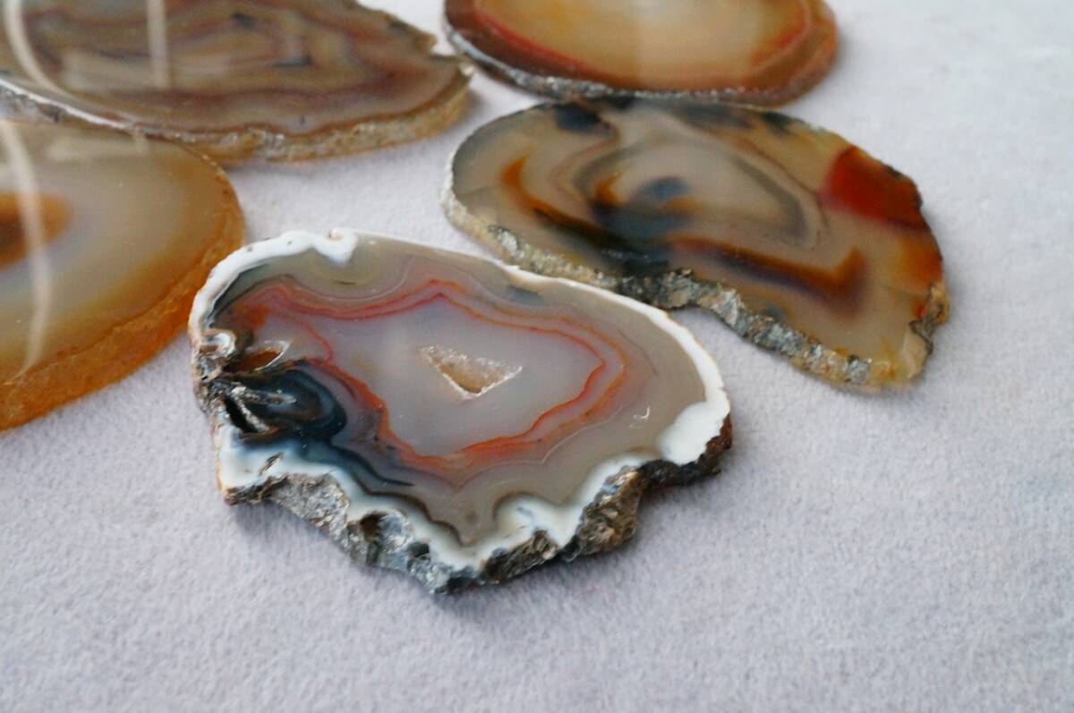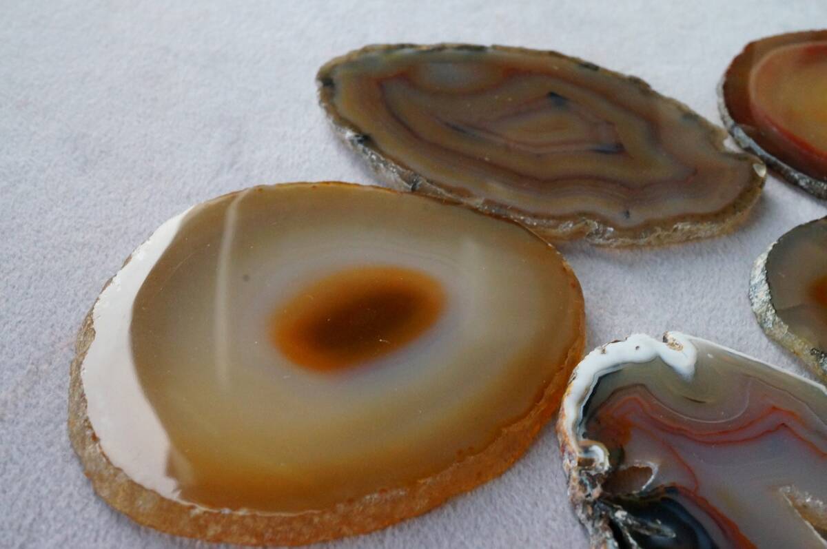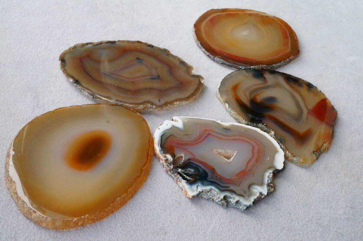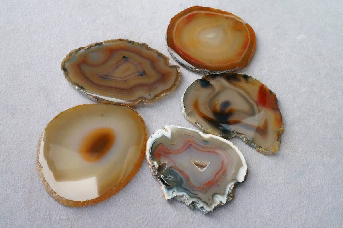 | 希少!昔の在庫なので上質!縞模様が綺麗な上質ブラジル産瑪瑙・メノウ・めのう・メノー・ピクチャーメノースライス板原石5枚セット127g② | |||||||||||