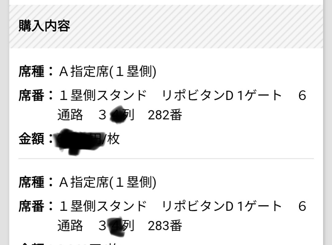 【席種】A指定席(1塁側)