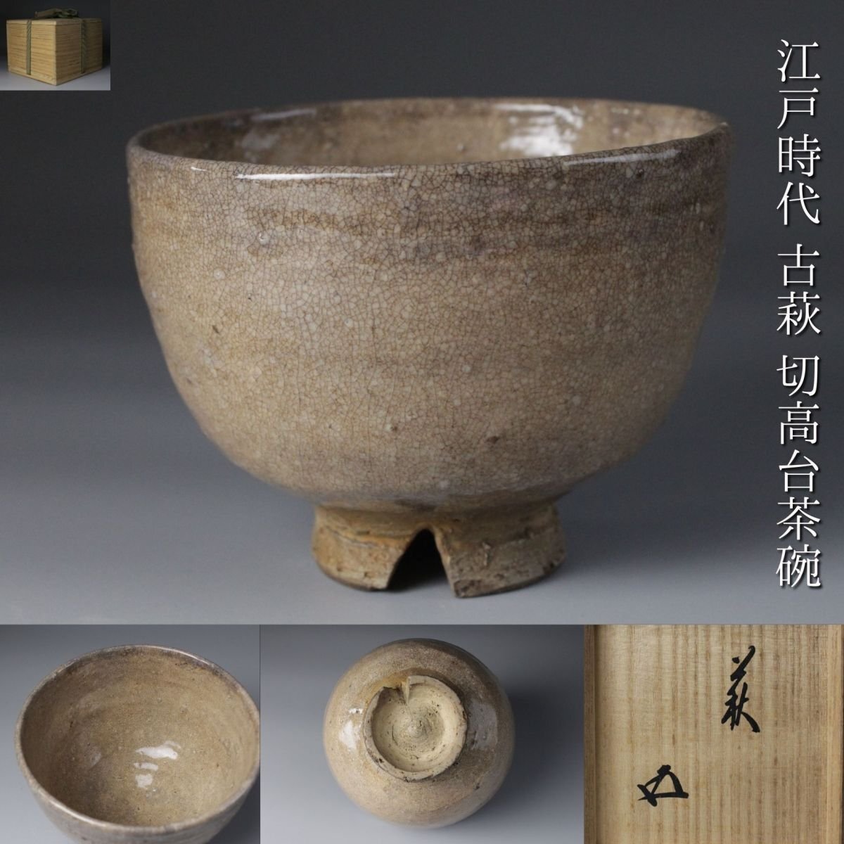 * * * 商品詳細 * * * ここでしか出逢うことのできない唯一の美をご紹介させて頂きます。 経年による魅力が溢れたお品のご紹介です。 萩焼は古い時代からり茶器として珍重されてきました。 本品も萩焼ならではの素朴な土肌に柔らかな乳白色の釉薬が掛かり、 自然の素直さと上品さを醸し出しています。 特筆すべき点は、長年の使用と経年により肌に味が出る『萩の七化け』です。 造られてから様々な人々の手に渡り悠久の時の中で景色を変えていったことでしょう。 その為、新物には出せない奥ゆかしさと歴史の重みを宿しています。 まさに古美術の趣に溢れた逸品でございます。 この機会に是非お手元にてお迎えください。 ■商品内容/ 茶碗、書付箱 ■サイズ/横11.5㎝×高8.5㎝ 箱:四方16㎝×高12㎝ ■状態/ 経年によるスレ、小傷、汚れ 箱にスレ、小傷、汚れがございます。 ※写真にてご確認、ご了承の上ご入札下さい。