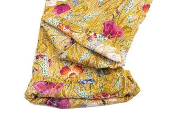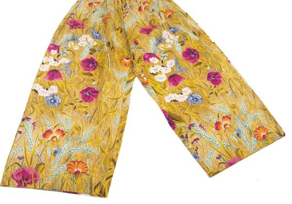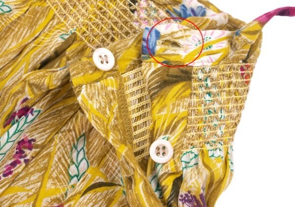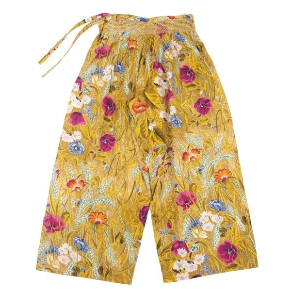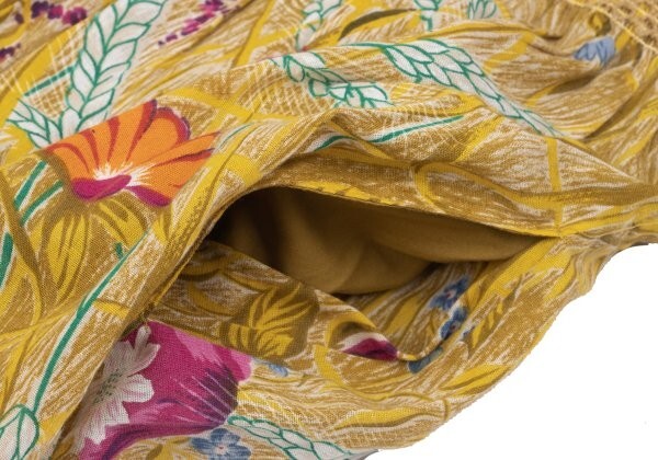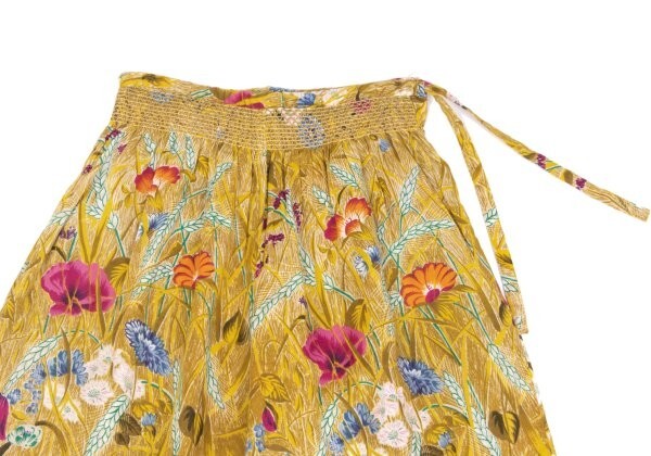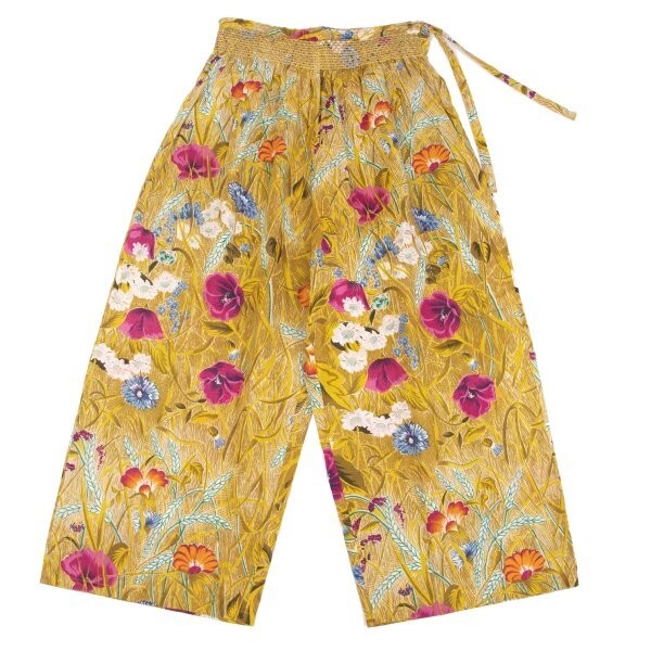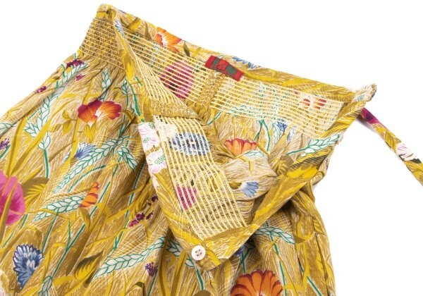 | ケンゾーKENZO コットンリネンフラワープリントサイドドロストワイドパンツ 黄他M |