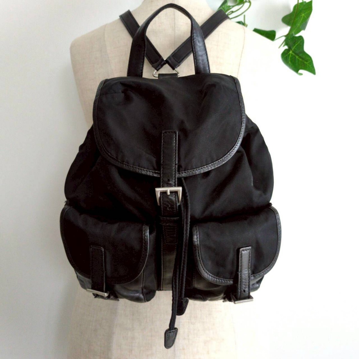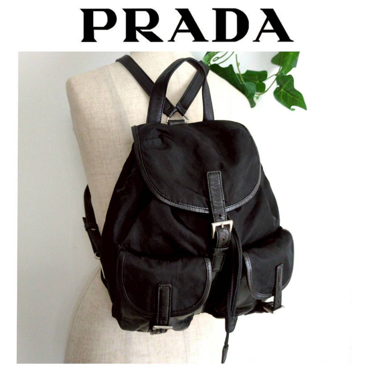 【商品】 PRADA オールド プラダ ヴィンテージ ハーフレザー 本革 ナイロン ミニリュック デイパック ハンドバッグ 鞄 トライアングル 三角ロゴ オールド 旧ロゴ VINTAGE 96s イタリア製 定価約25万円