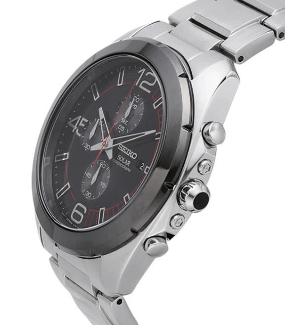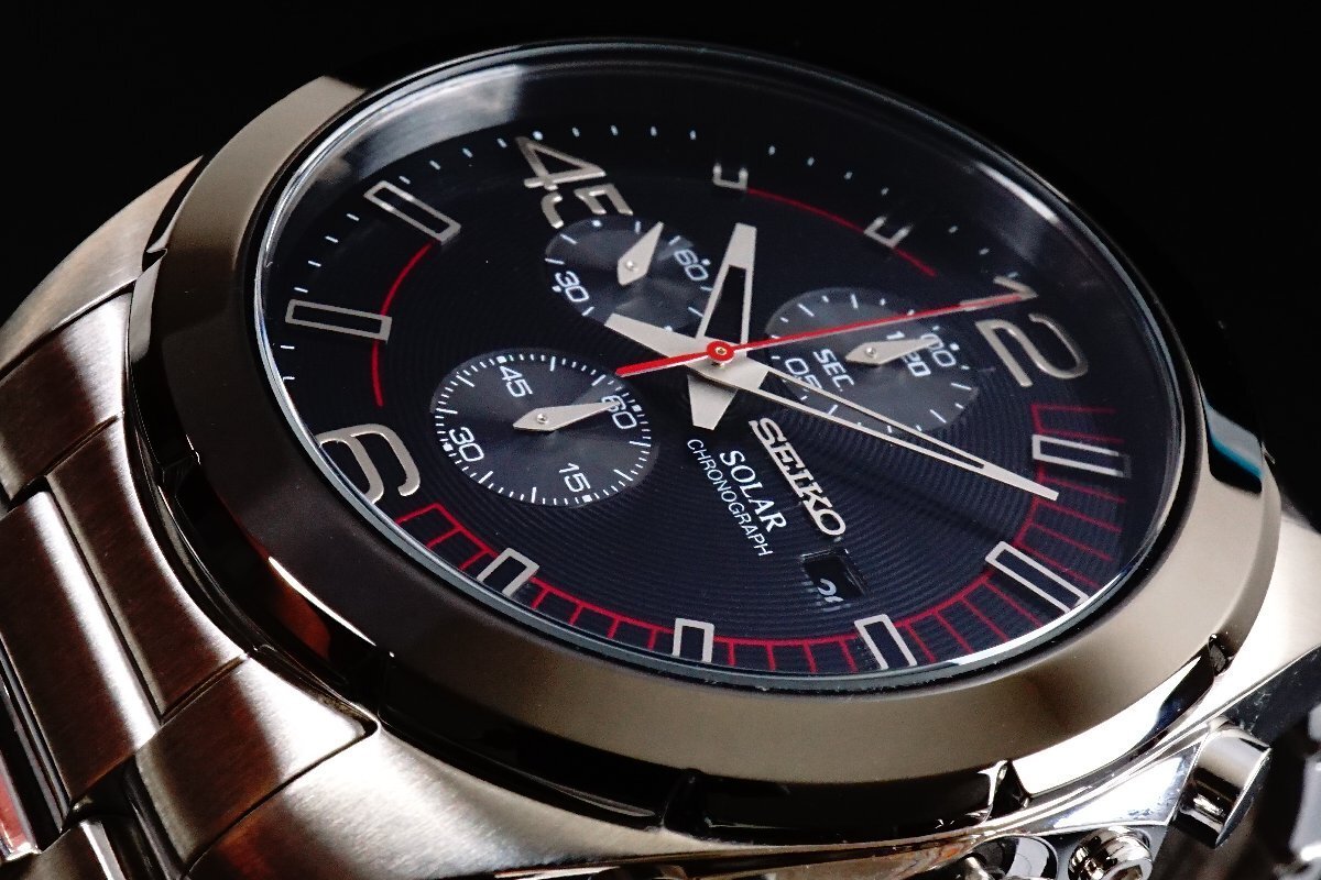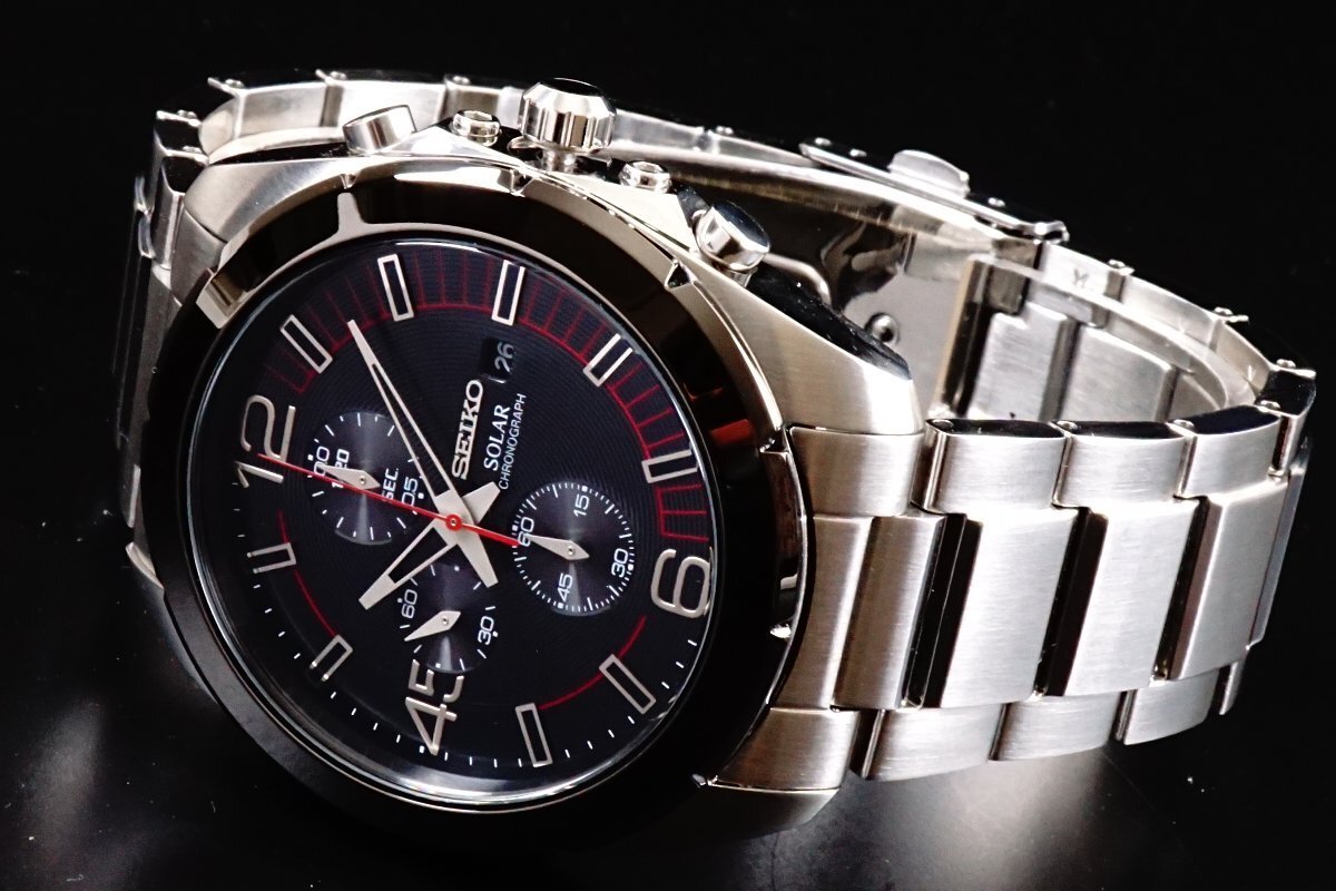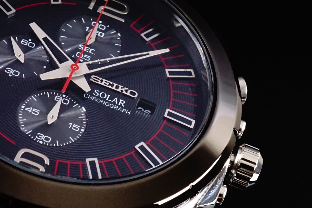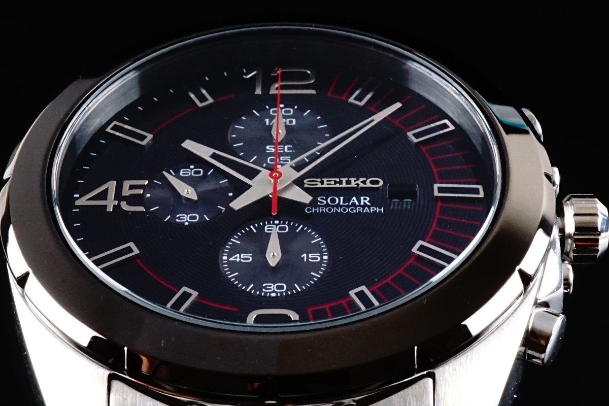 日本が世界に誇る時計ブランドSEIKO(セイコー)はブランドテーマに「革新と洗練」を掲げるリーディングカンパニー。 自社一貫生産による圧倒的な品質管理は、世界で高い評価を受けています。 展開するラインアップの中には、国内で生産・販売が終了していても、欧米を中心に根強い人気を誇り、海外市場向けのみに製造されているレアなモデルもあります。 高性能のセイコークロノに電池不要のソーラーバッテリー搭載モデルが登場! 正統派クロノグラフの定番デザインの逸品。 防水機能も100m防水に裏ぶたはスクリューバックを採用。 ソーラーシステム搭載のクロノグラフは希少レアモデルです。 ■仕様 ソーラー充電(フル充電での駆動:約6ヶ月) 10気圧(100m)防水 クロノグラフ(通常秒針位置) 1/20秒計測(12時位置) 60分間積算計(6時位置) スモールセコンド(9時位置) デイト表示(日付) ■サイズ ケース:(約)H45×W45×D12.5mm (ラグ、リューズを除く) 重さ:(約)190g 腕回り:最大(約)19.5cm ■材質 ケース:ステンレス バンド:ステンレス ■カラー 文字盤:ブラック×レッド ベルト:シルバー ■付属品 専用BOX |