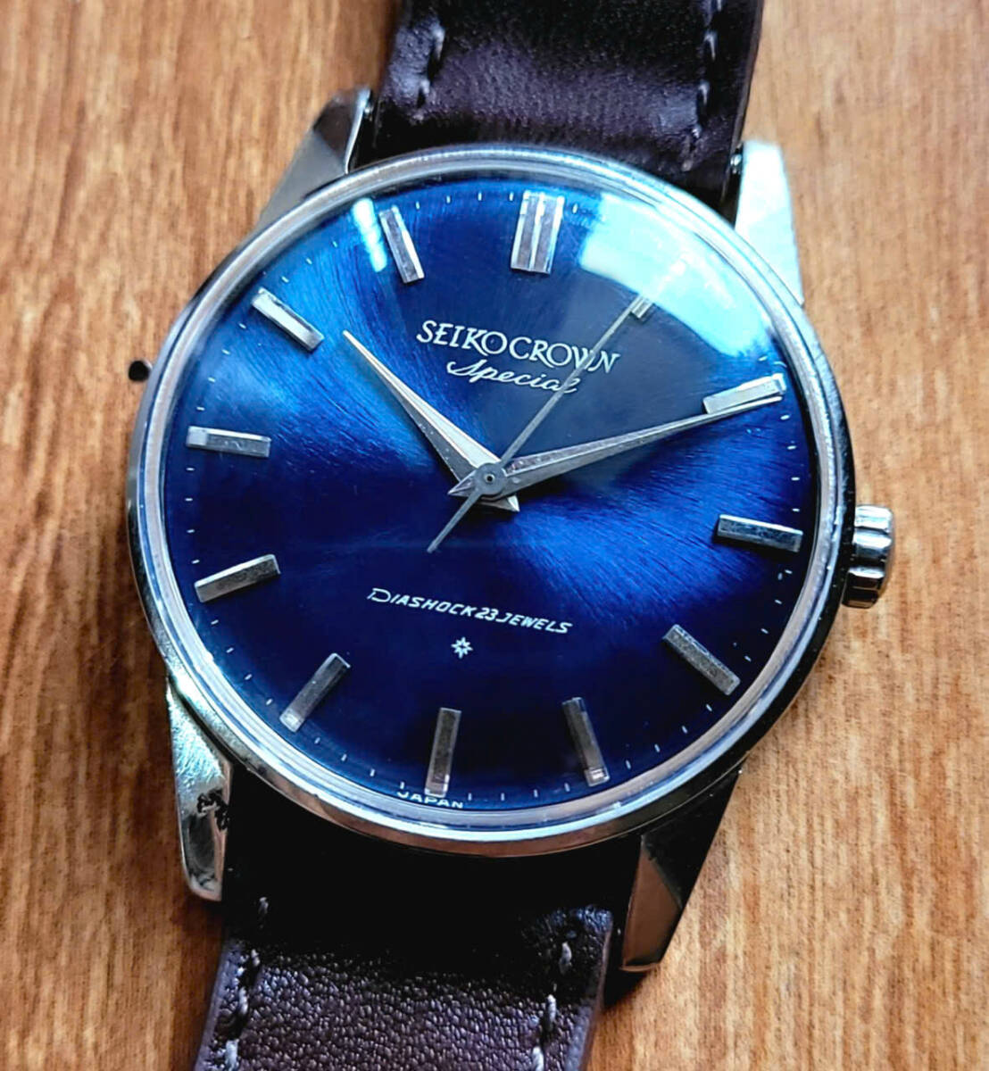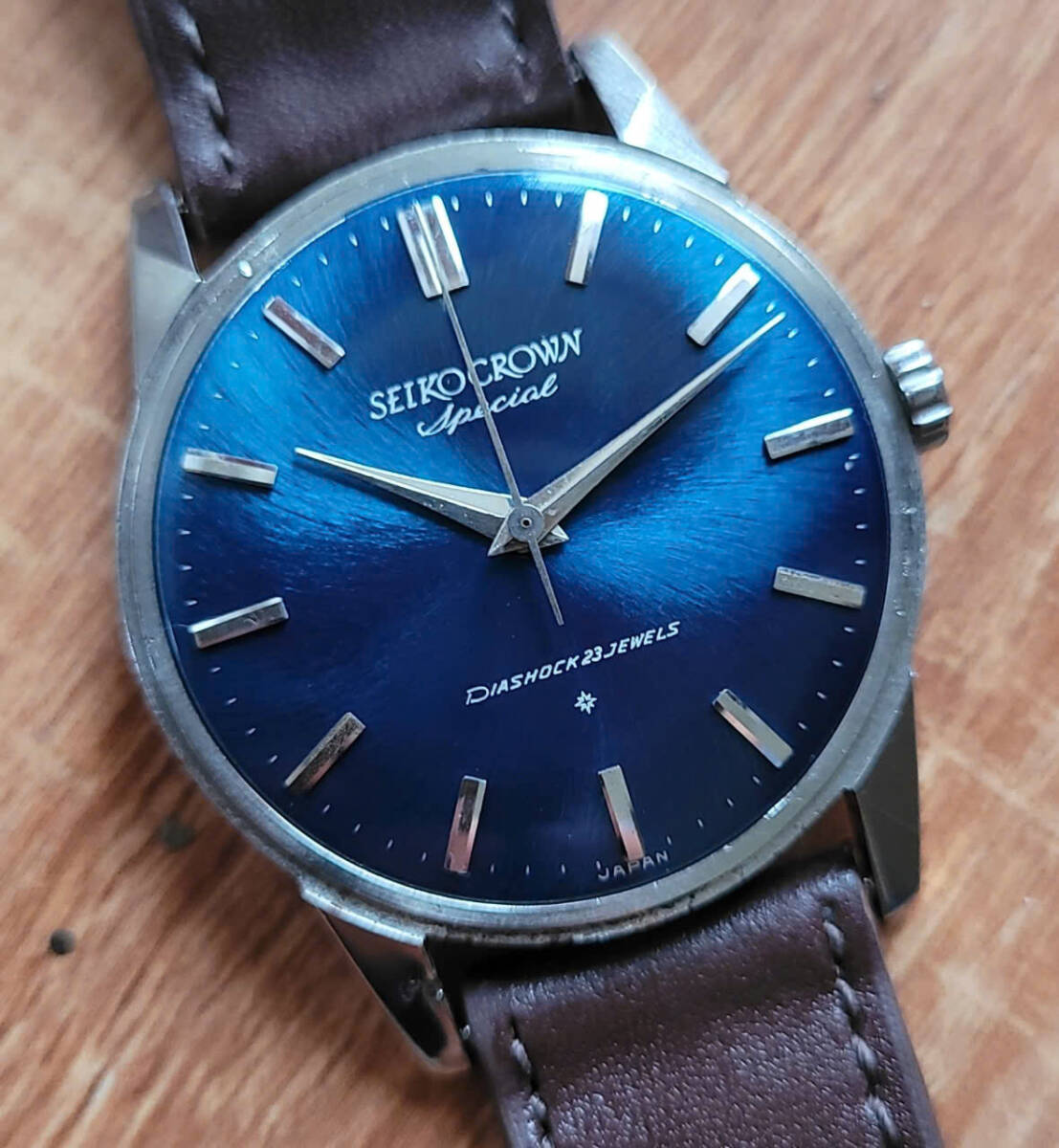 セイコー クラウン ブルーダイヤル トルネードウォッチ。テスト済み、正常に動作しています。