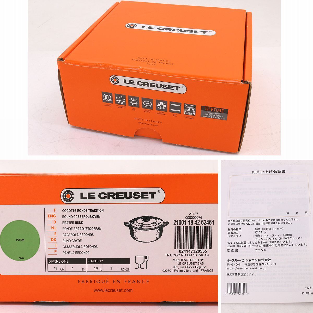 商品名 | ル・クルーゼ ココット ロンド トラディション 18㎝ パームグリーン/シルバーつまみ |