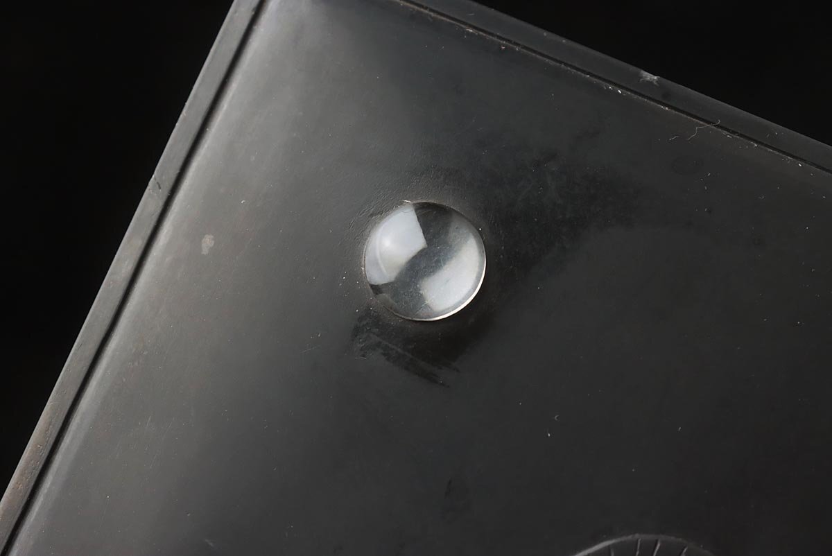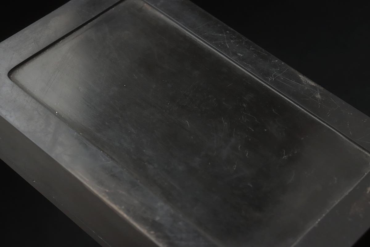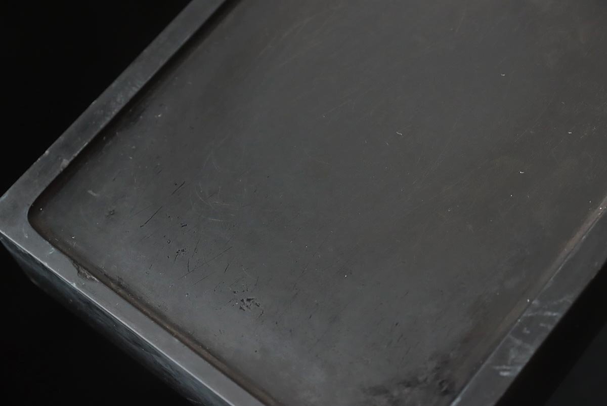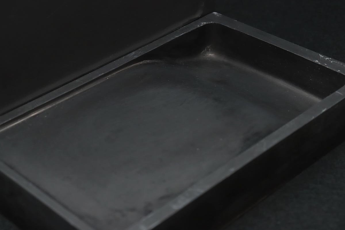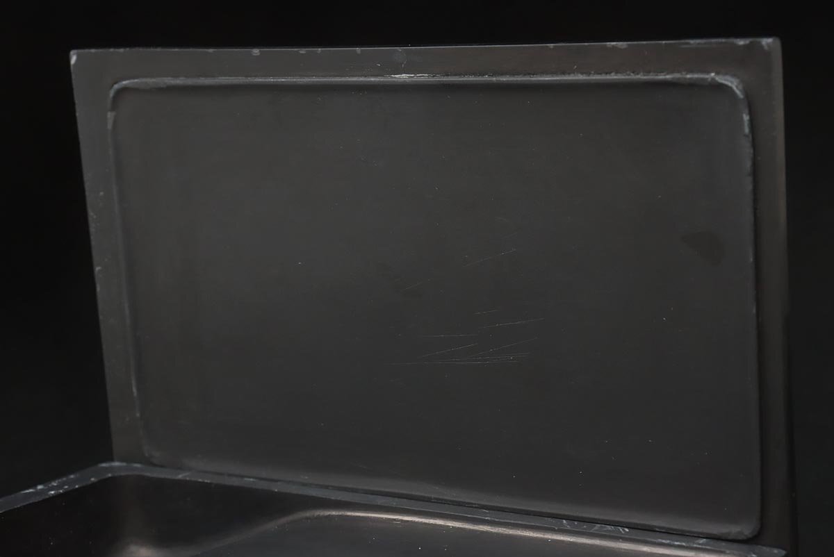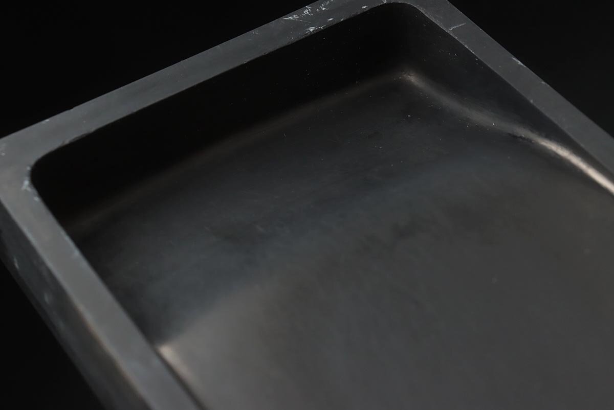 ◆ 書道具 黒石 ガラス玉象嵌 芭蕉彫図 蓋付硯 縦16.6cm・古硯・書道硯・長方硯 書画道具 文房四宝 ◆
