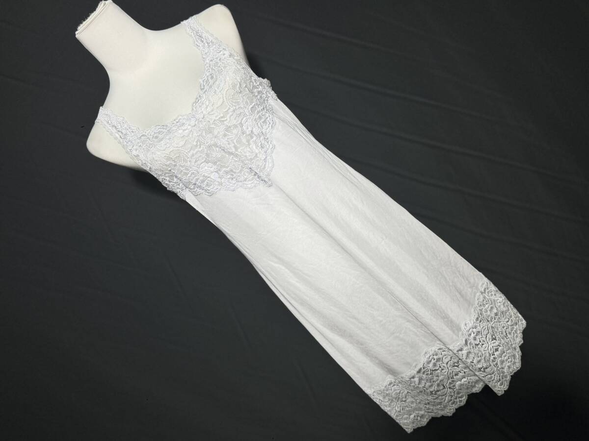 ■サイズ : B86-94 スリップ丈90 ■素 材 : ポリエステル100% (レース)ナイロン レーヨン その他 ■お 色 : オフホワイト(薄水色)系 (光沢) (光の加減やPC環境により実物と多少色が異なる場合があります) ■状 態 : USED ※ホームクリーニング済み | ||