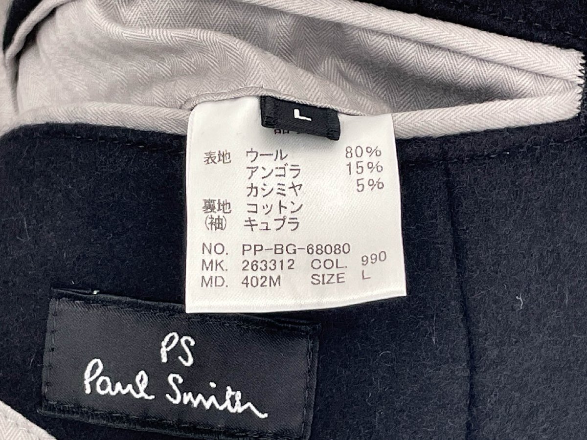 美品【PS Paul Smith PS ポールスミス】MD.263312 MD.402K カシミヤ混 メルトン生地 ショートコート (メンズ)L 黒 メタルボタン ◇32MB4994