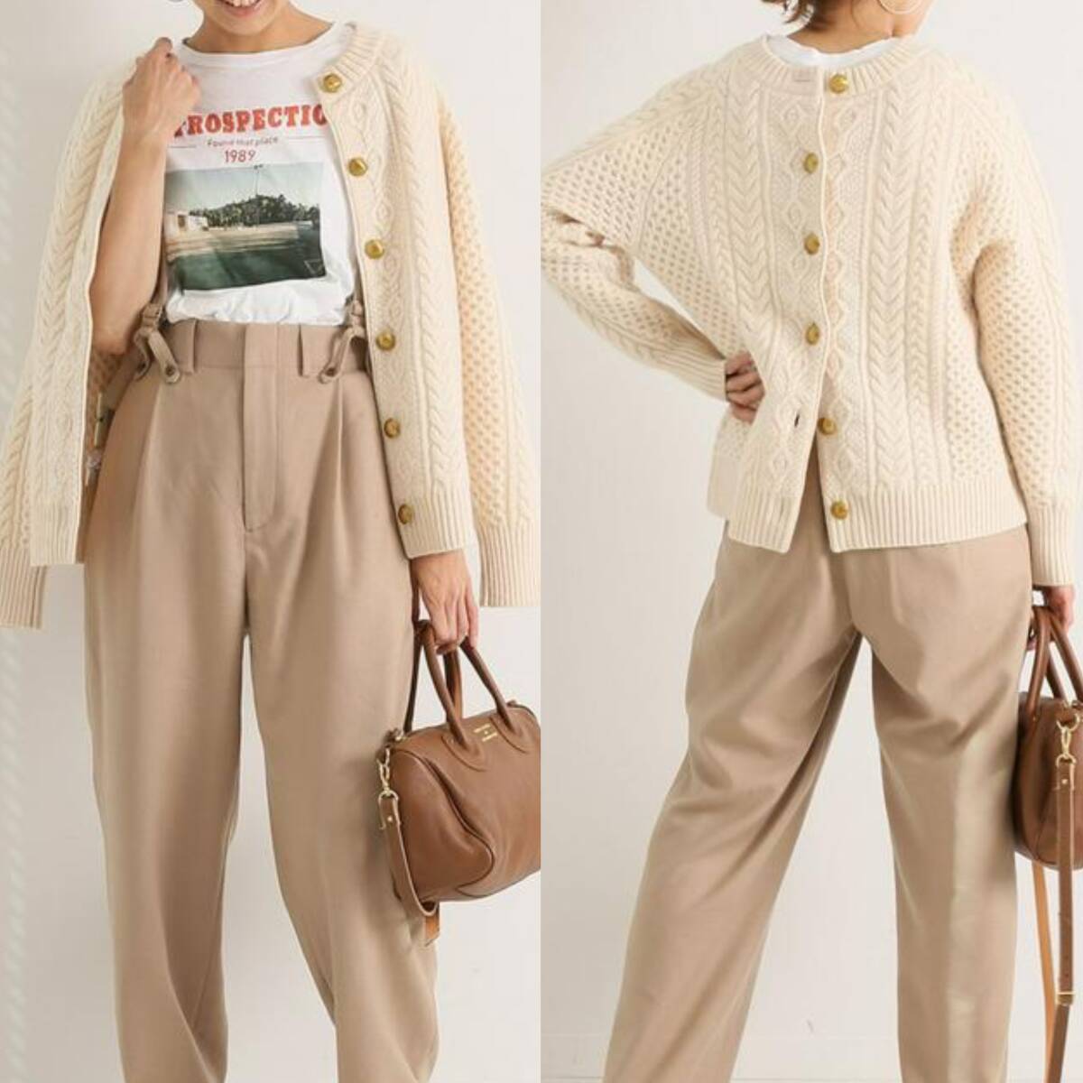 カーディガンとして着るのはもちろん、プルオーバーとしてシャツやカットソーをレイヤードするのも今シーズン一押しのスタイリング。