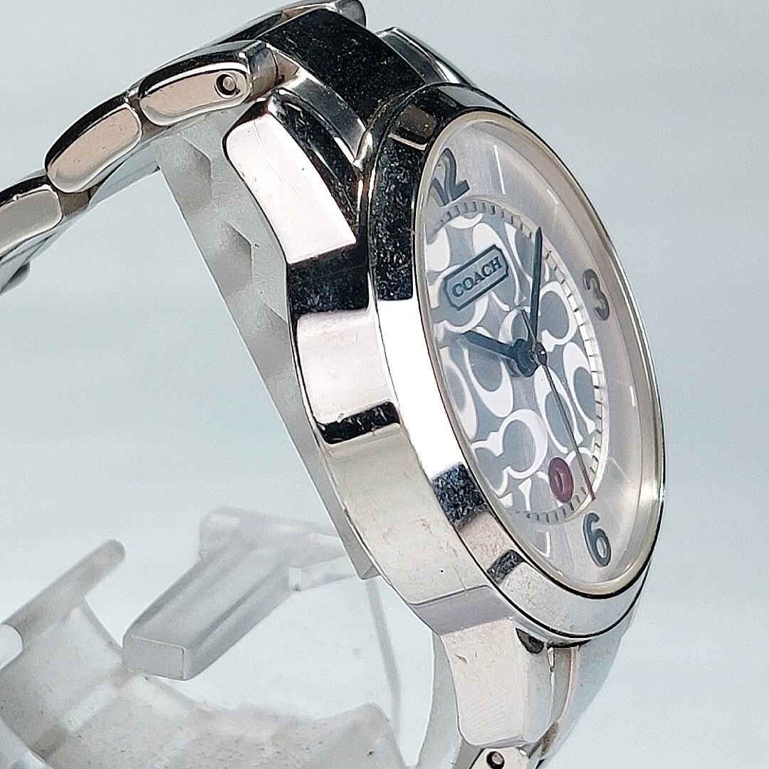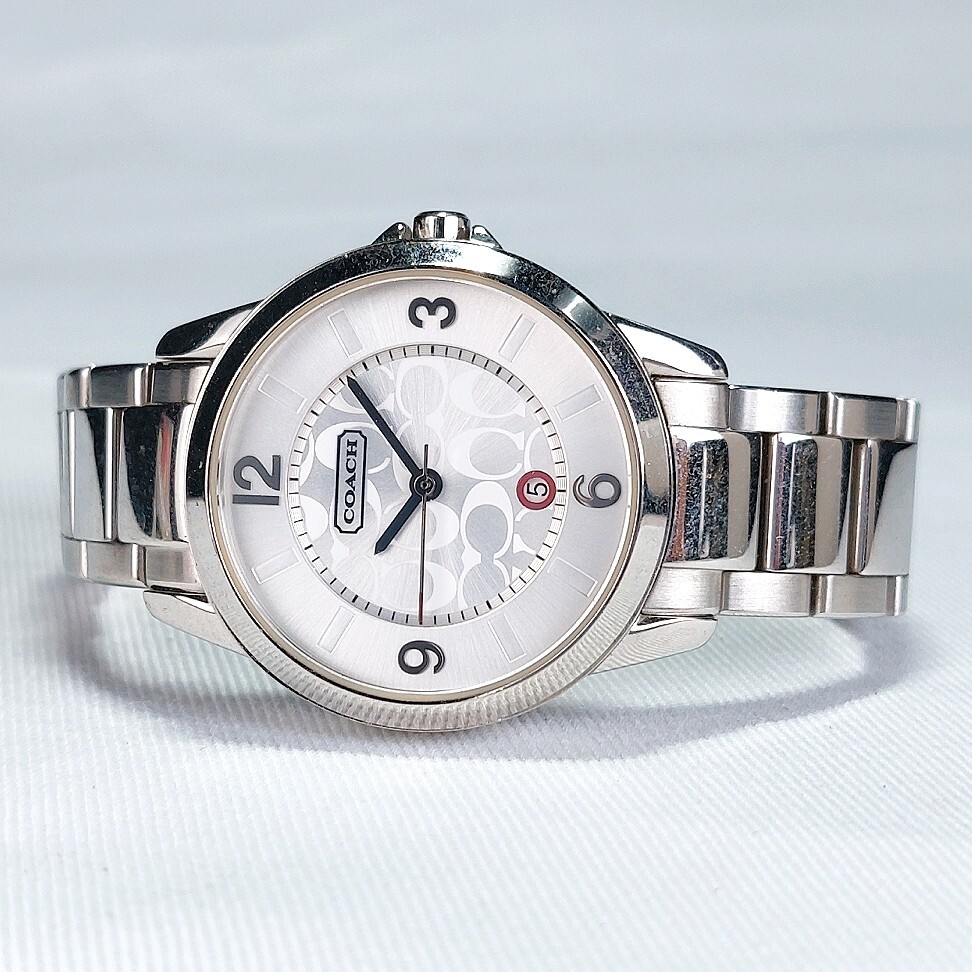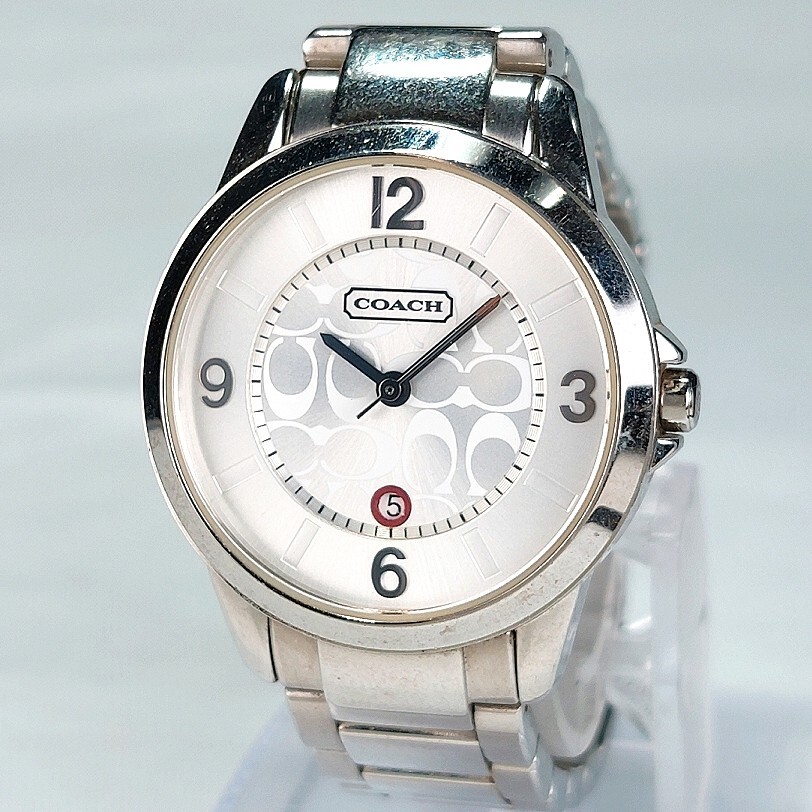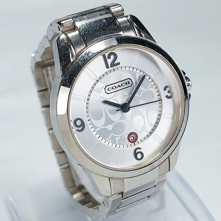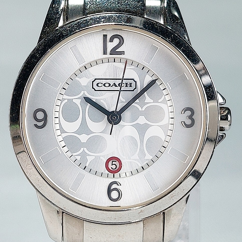 美品 COACH コーチ 腕時計 クオーツ CA.13.7.14.0428 シグネチャー アナログ ラウンド シルバー カレンダー 電池交換済み 動作確認済