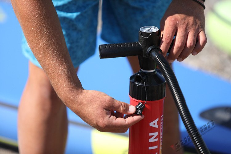 【商品SPEC】■サイズ:63×23×10cm■容量:2.4L■重量:1.06kg■空気圧:MAX 20psi●SUP用のダブルアクションハンドポンプ。●押しても引いても空気が入り、迅速かつ簡単に膨らませることが可能。●スイッチによってシングルアクションへ切り替えることも可能。●空気圧が確認できるプレッシャーゲージ付き。●Tバーハンドルは取り外し可能で保管や収納時に便利。