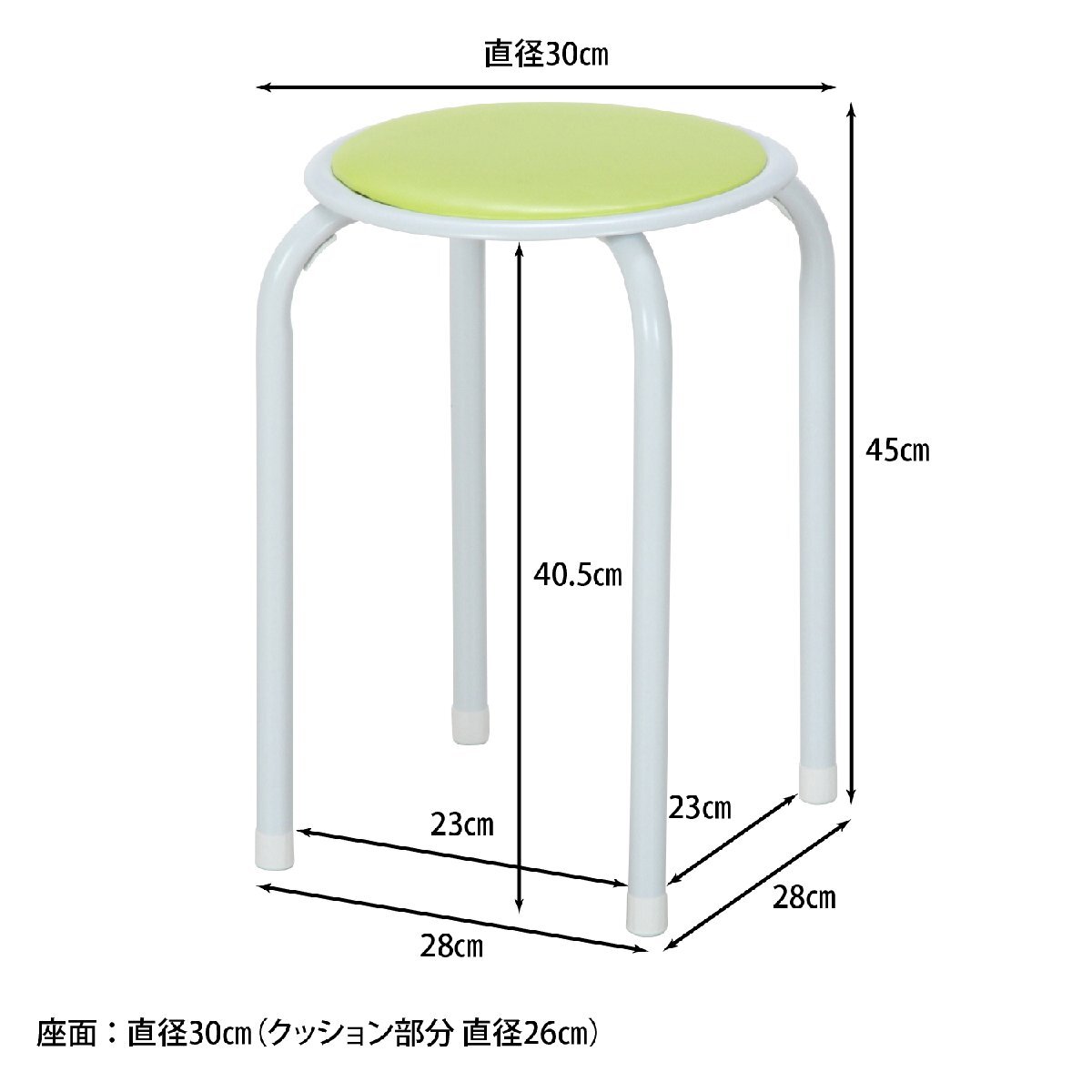 サイズ | 全体:幅300 × 奥行300 × 高さ450mm × 12脚 座面高:450mm 耐荷重(座面):80kg 座面直径:300mm 座面クッション直径:260mm 脚部鉄厚:1mm ※詳細はサイズ画像をご確認ください。 |