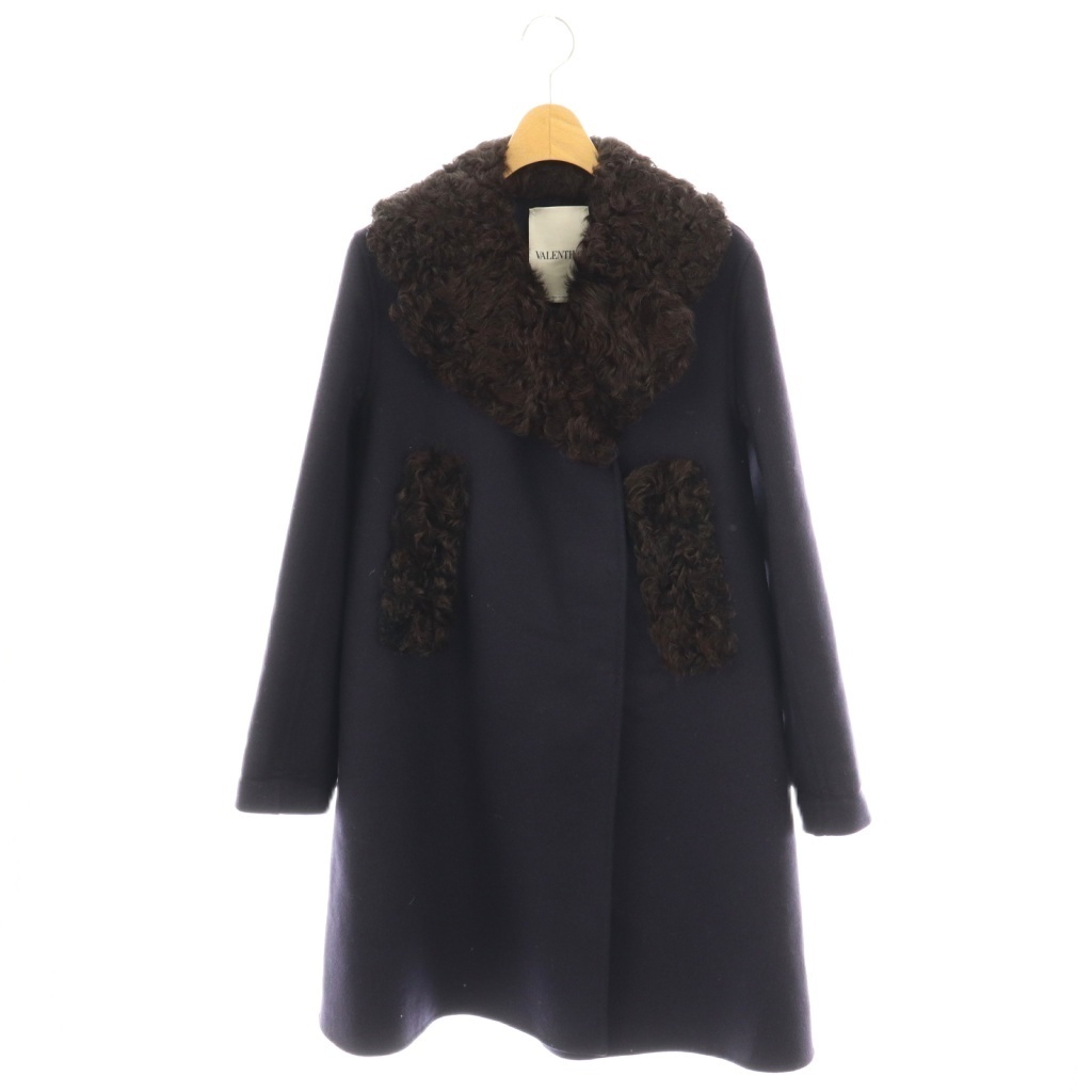 ヴァレンティノ ヴァレンチノ VALENTINO コート アウター ロング ファー 38 ネイビー ダークブラウン /DO ■GY57 レディース
