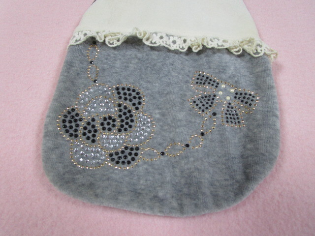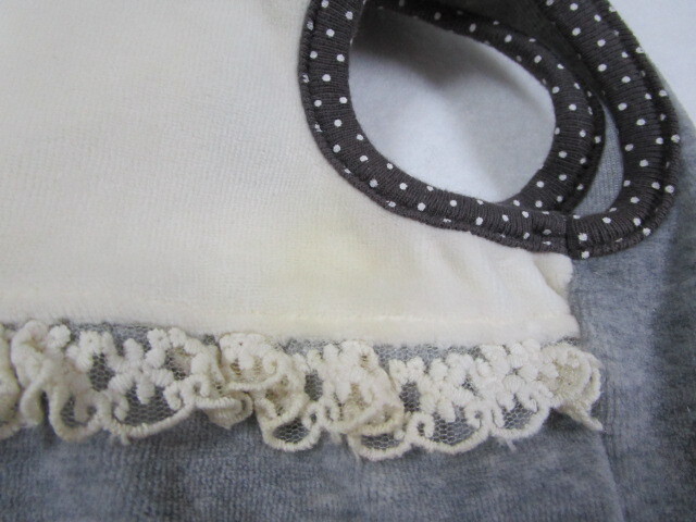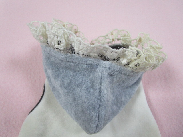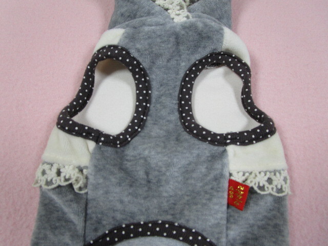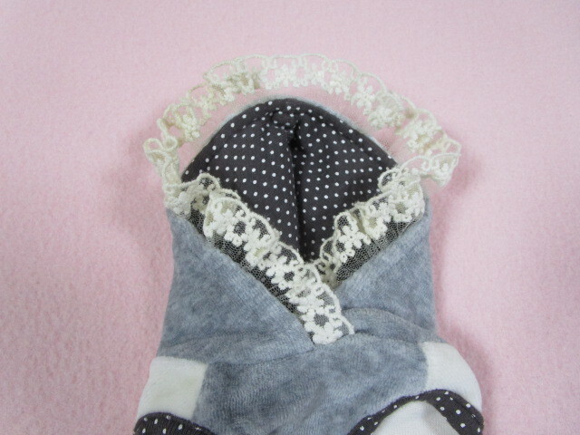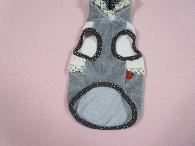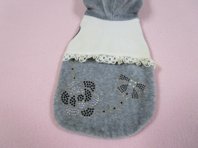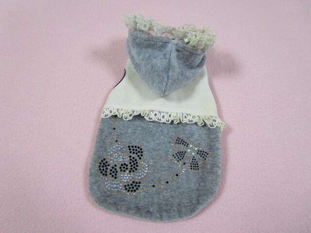 apple dog Sサイズ 胴回り31㎝ カメリア・リボン ベロアパーカー グレー・アイボリー 中古