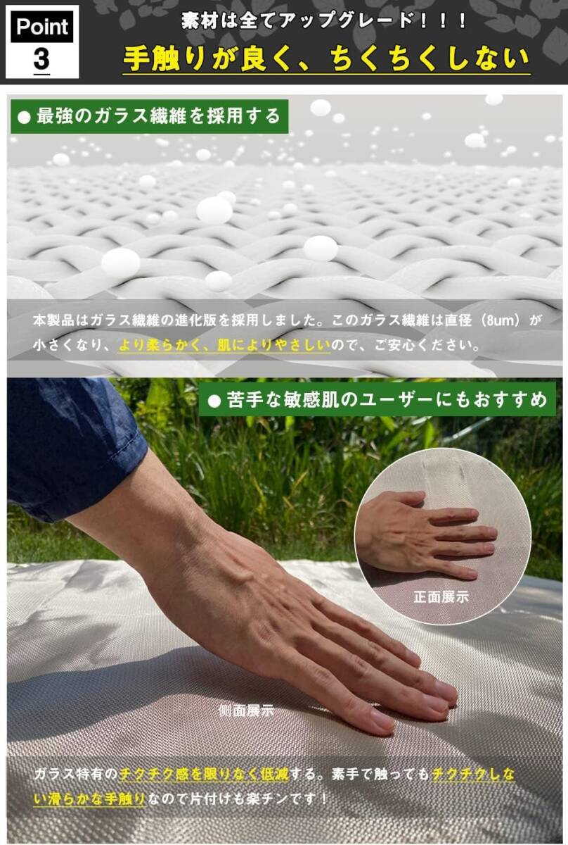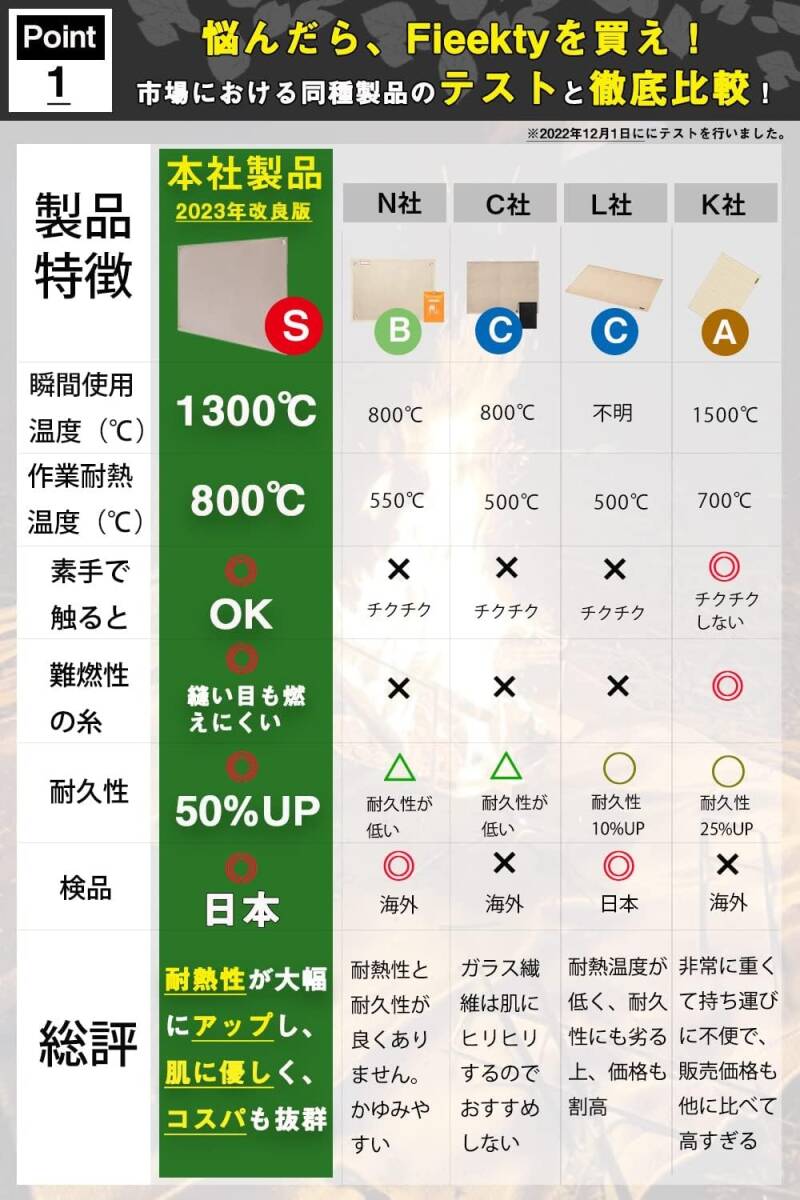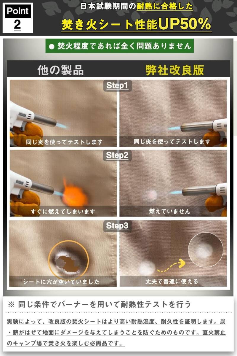 【高級ガラス繊維】8umの極細ファイバーグラスを使用し、耐熱温度800℃・瞬間最大1300℃を実現。火の粉や燃えかすをしっかりキャッチし、地面への放射熱も遮断!