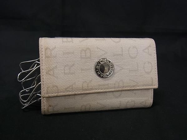 BVLGARI ブルガリブルガリ ロゴマニア キャンバス キーケース 鍵入れ メンズ レディース アイボリー系 DG8870