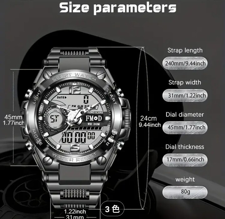 ムーブメント:クォーツ、デュアルディスプレイ、デジタル