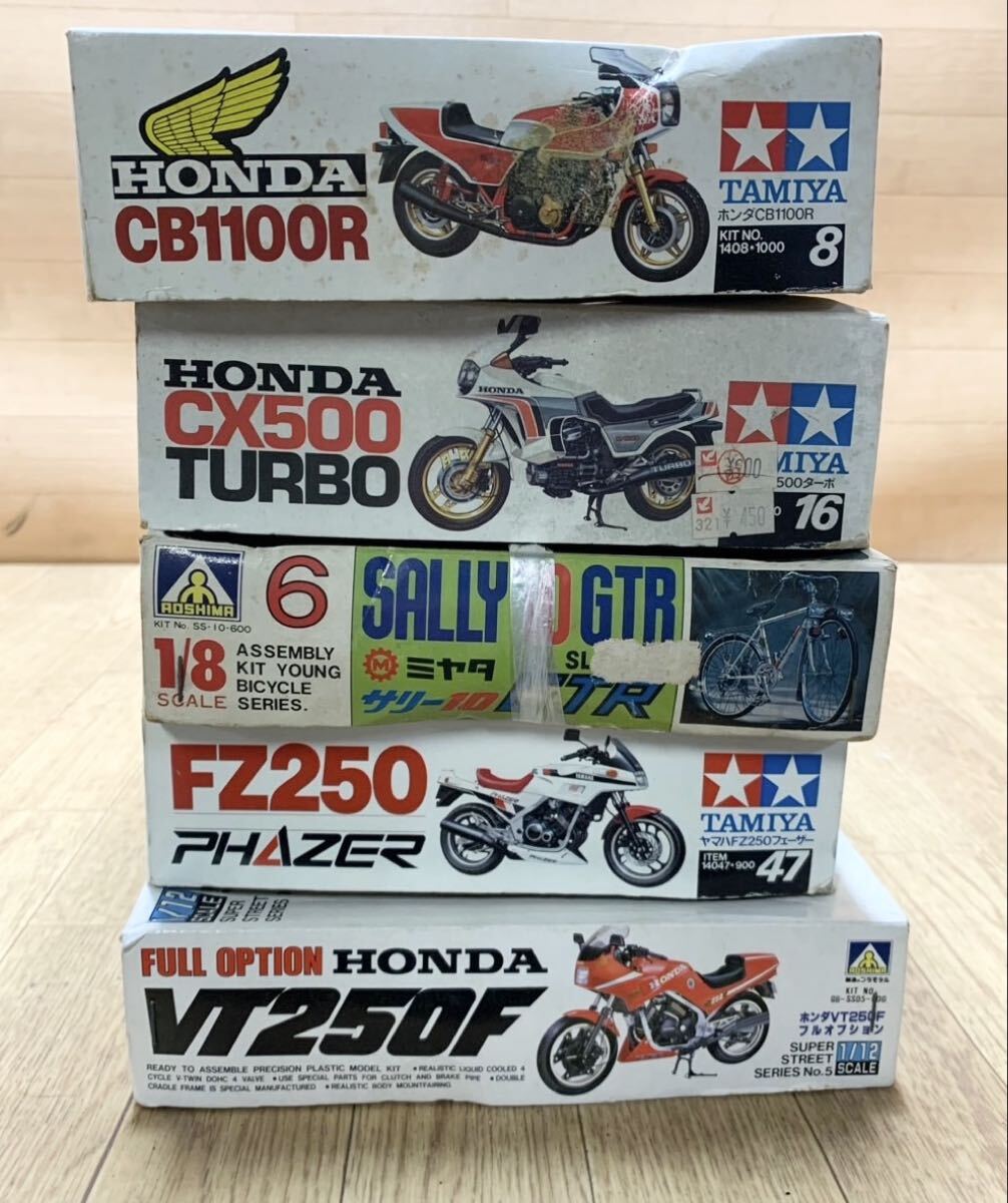 未使用☆未組立☆ タミヤ HONDA CB1100R CX500 ヤマハ FZ250 VT250F アオシマ 1/8 ミヤタ サリー10 バイク 等 大量 まとめて 5点 Y9
