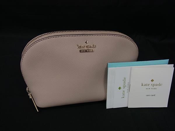 ■極美品■ kate spade ケイトスペード PWRU5287 レザー マルチポーチ マルチケース メイクポーチ 小物入れ ピンクベージュ系 DI9634