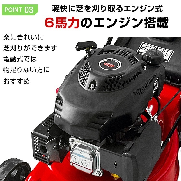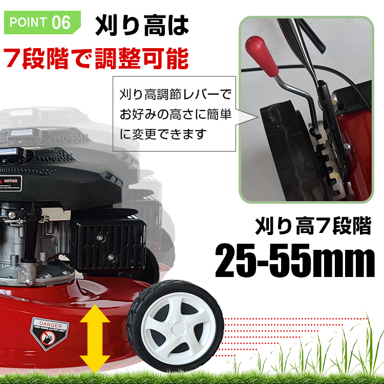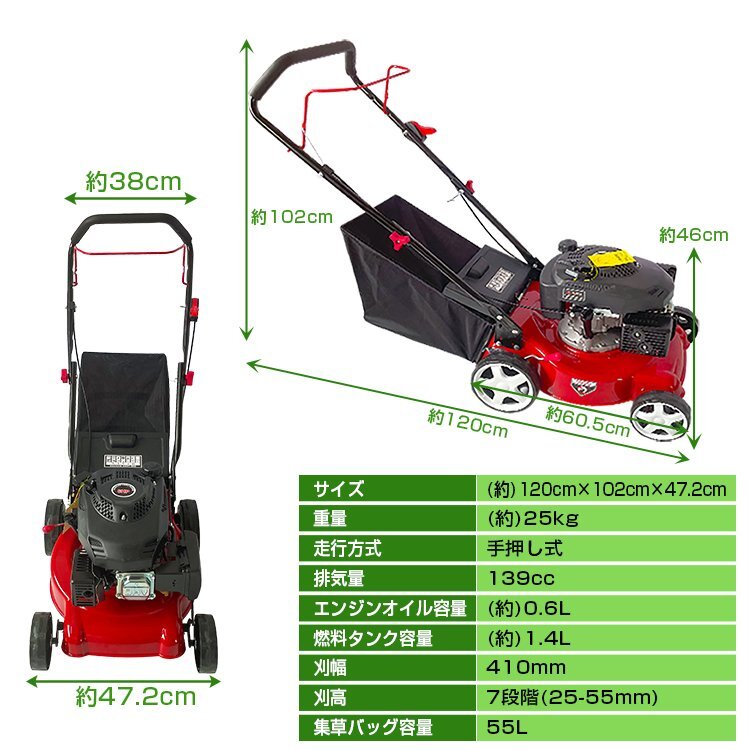 芝刈り機 手押し式 エンジン 刈払機 6馬力 刈幅410mm 刈高25-55mm 軽量 家庭用 伐採 剪定 ガーデニング お手入れ 草刈り 雑草 除草 ny538
